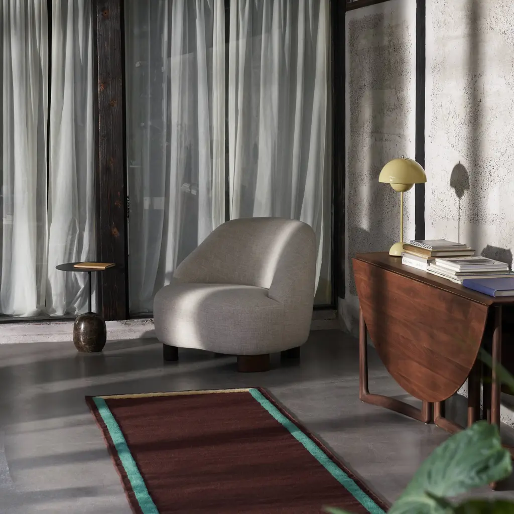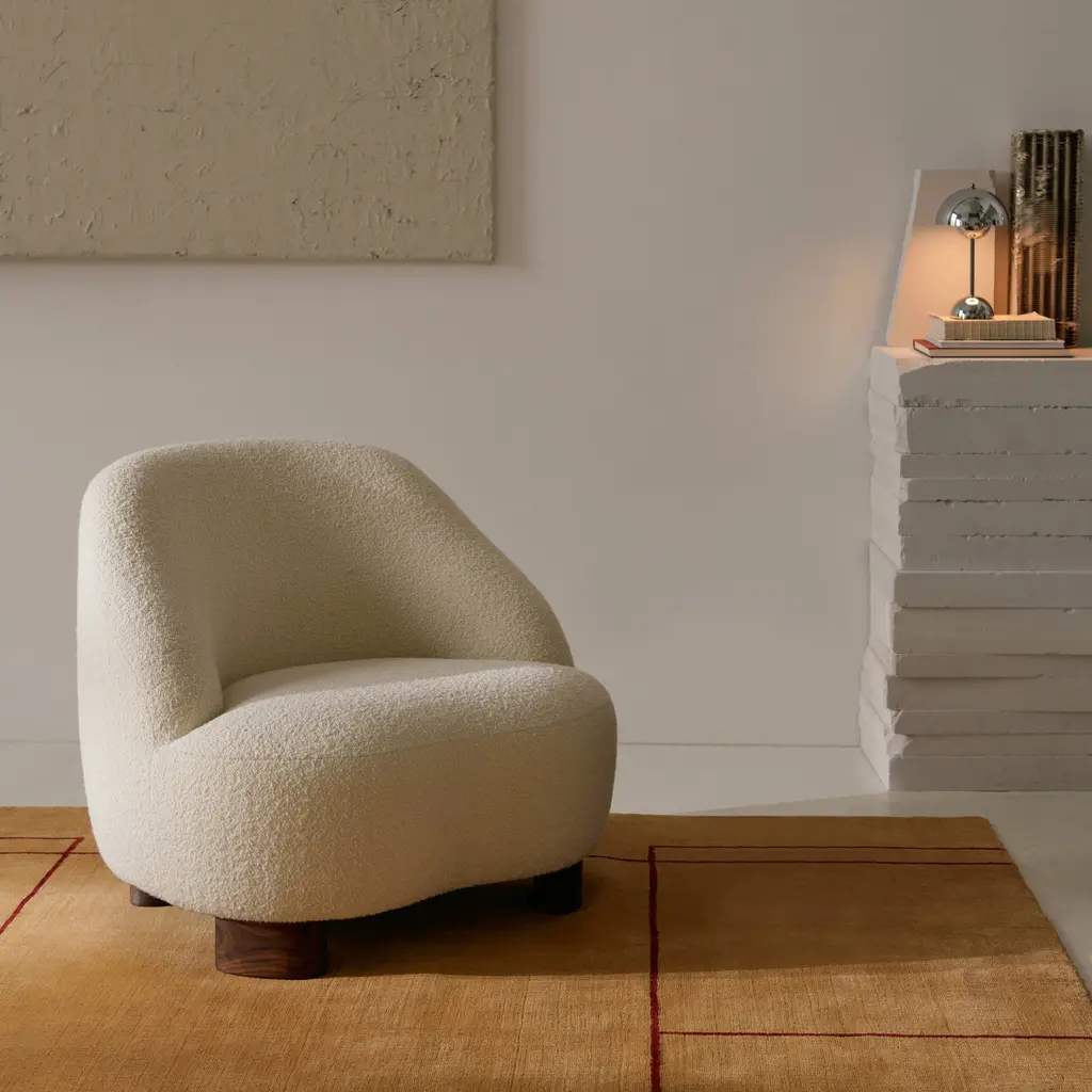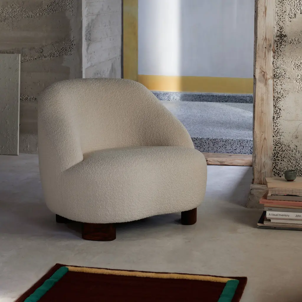 With extravagantly scaled proportions, Louise Liljencrantz decided to name LC1 and its companion Margas seating pieces for her beloved grandmother. Clad in allover upholstery from custom selections or the designer's select stock fabrics, the chair has turned wooden legs in oiled or lacquer finishes. Exceptional construction extends to the solid beech and plywood frame covered in HR foam and polyester wadding for a welcoming addition to both commercial spaces and private residences.