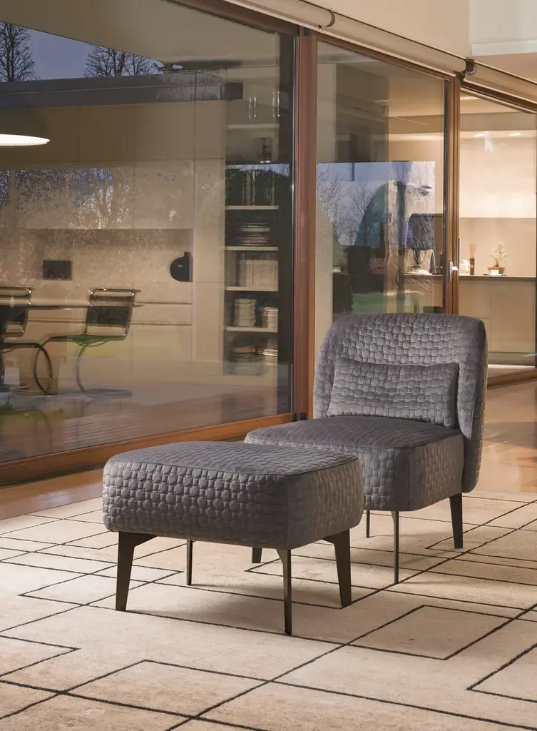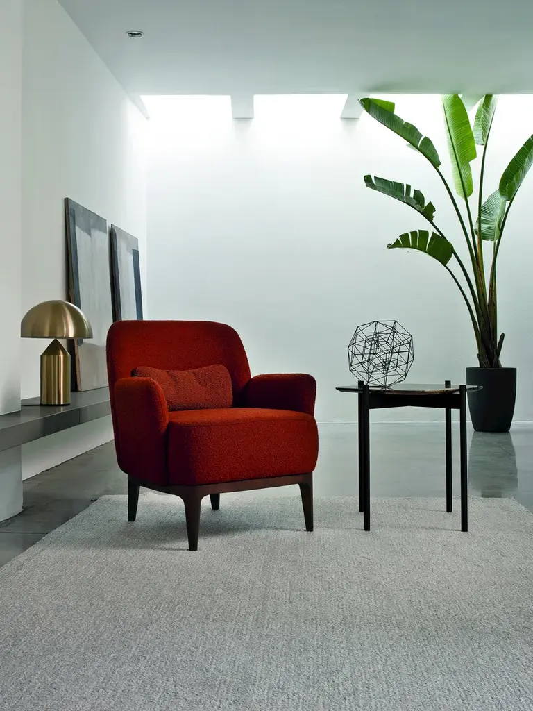 Margot armchair goes well with all the sofas in the collection thanks to its elegant, discreet presence and perfectly proportioned volumes. Available with and without armrests, Margot features refined, original metal or ash feet.
