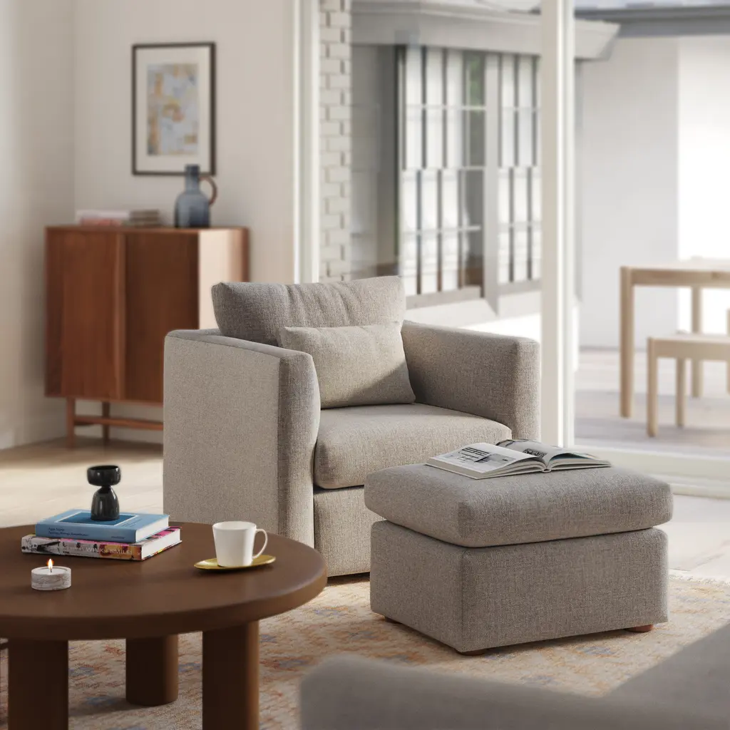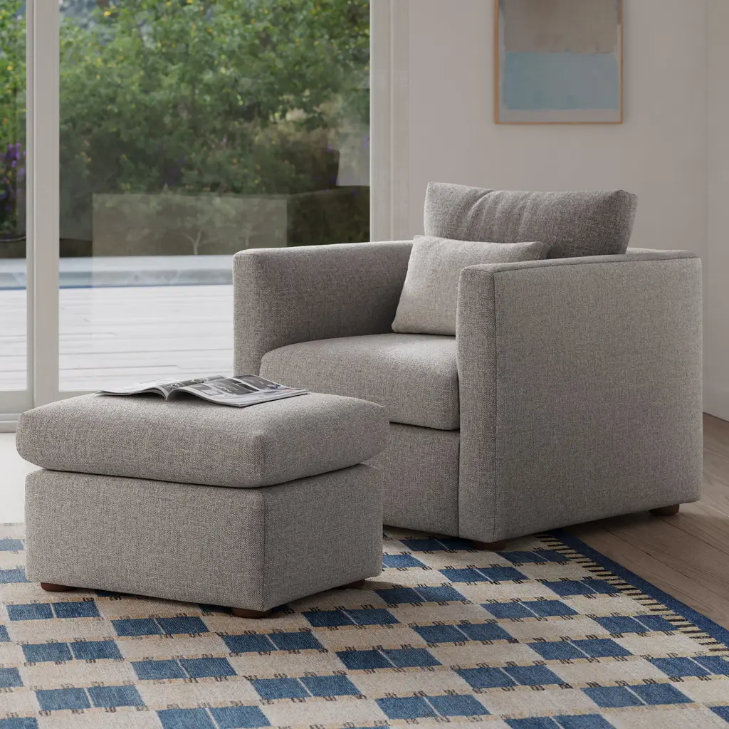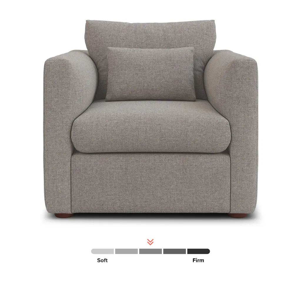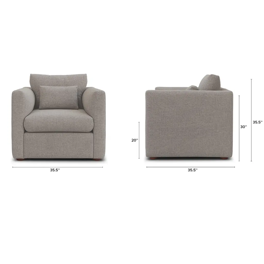 How do you want to feel? Elevated. Comfortable. Calm. Collected. With clean details and pleasing design heft, the Marina lounge chair manages to feel at once laid back and put together. Generously padded seats and armrests encourage long periods of meandering; bolster pillows make perfect props for a surprise nap. Upholstered with Clover fabric, the Marina is treated with a stain-repellant C0 finish, offering exceptional protection to your sofa while being free of gross forever-chemicals. Throw on your favorite 90s romcom and bask in a little nostalgia.