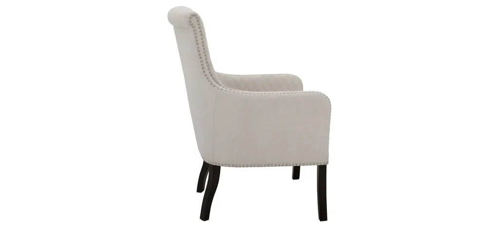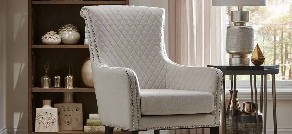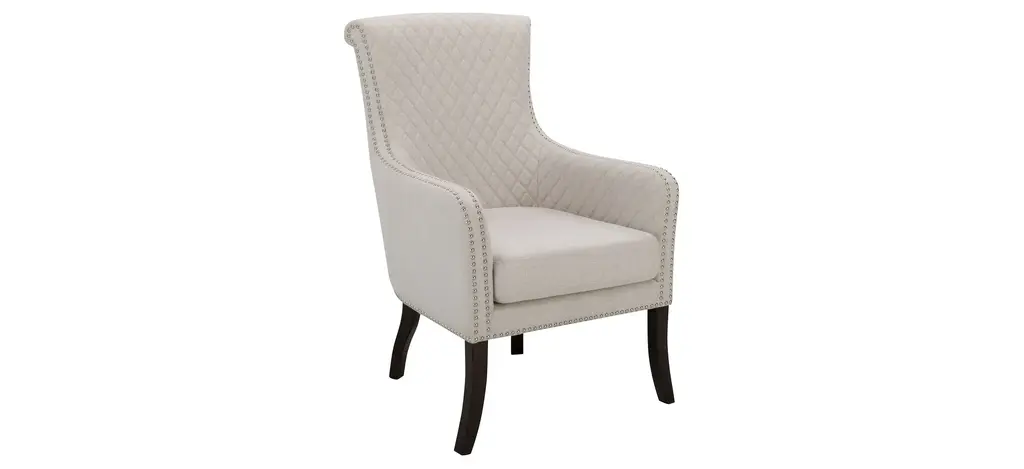 The Marlena accent chair is an elegant choice with many features: nailhead trim, flared arms, diamond quilting and curved legs. This chair brings together classic design elements, grand scale and polish to create a sophisticated grandeur. This chair is sure to be the envy of your guests.