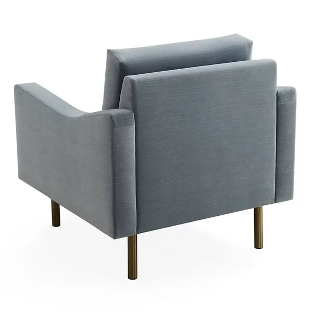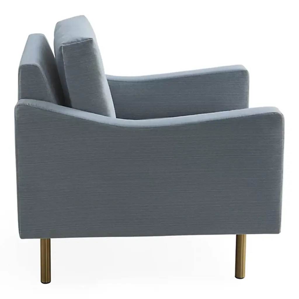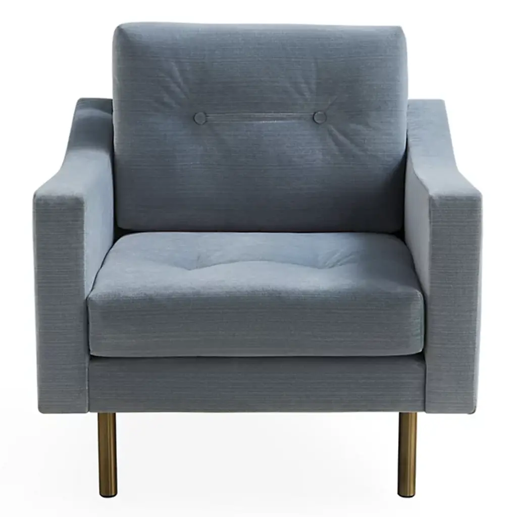 The Marnie Lounge Chair from Jonathan Adler offers a perfect blend of modern elegance and ultimate comfort. Its clean, boxy silhouette and subtle swoop in the armrest cradle your elbow. Upholstered in a refreshing cerulean hue, it features button-tufted cushions and brushed stainless steel legs, exuding a sleek, contemporary vibe. Ideal for pairing, it is perfect for cozy cocktail hour chats or creating the ultimate cocoon in a reading nook. This chair combines style and relaxation, making it a standout in any space.