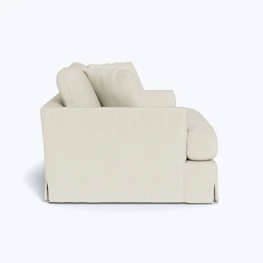 The Martha's Vineyard Chair and a Half, part of the iconic Cobble Hill collection and a customer favorite at ABC Carpet & Home, embodies timeless, laid-back elegance. Perfectly sized for solo lounging or cozying up with a loved one, this chair offers generous seating, making it ideal for lazy afternoons or casual moments of relaxation. Handcrafted in the USA with a sustainably sourced Goodwood frame, the Martha's Vineyard Chair and a Half delivers exceptional craftsmanship with an eco-conscious approach. The seat and back cushions are made from a luxurious feather-down blend encased in soft ticking, providing a plush, supportive feel. Paired with toss pillows, this chair offers the ultimate in cozy comfort while adding a stylish touch to any room. One of the standout features of this chair is its slipcovered design, blending beauty with practicality. The slipcover can be easily removed for cleaning or replaced to refresh your space, making maintenance effortless. Available in durable cotton or linen fabrics, the slipcover allows you to customize the chair to suit your personal style. In addition to the chair and a half, the Martha's Vineyard collection offers a variety of pieces to complete your living space. From the spacious 104" grand sofa to the 135" sectional, ottoman, and chaise, each item is designed to create a relaxed, cohesive atmosphere in your home. The collection also includes the 74", 84", and 94" slipped sofas, providing the same relaxed charm in different sizes to suit various room configurations, making it easy to create a coordinated, inviting space. With its blend of enduring style, practicality, and luxurious comfort, the Martha's Vineyard Chair and a Half is a perfect choice for those who appreciate both beauty and functionality in their furniture. Whether placed in a living room, reading nook, or bedroom, this chair offers the perfect combination of casual elegance and everyday ease, making it a cherished piece for any home.