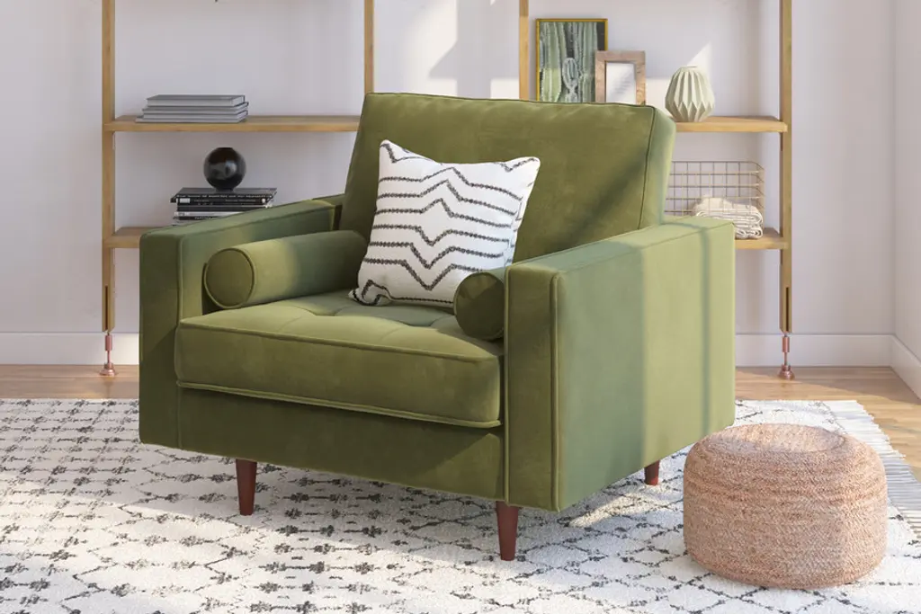 Give tradition a mid-century modern twist with the Matilde Velvet Armchair. From its clean lines and sleek silhouette, to its luxurious velvet tufted seats, this lounge chair radiates elegance. Added comfort comes from the dual bolster pillow and back cushion. Curl up with a good book in style!