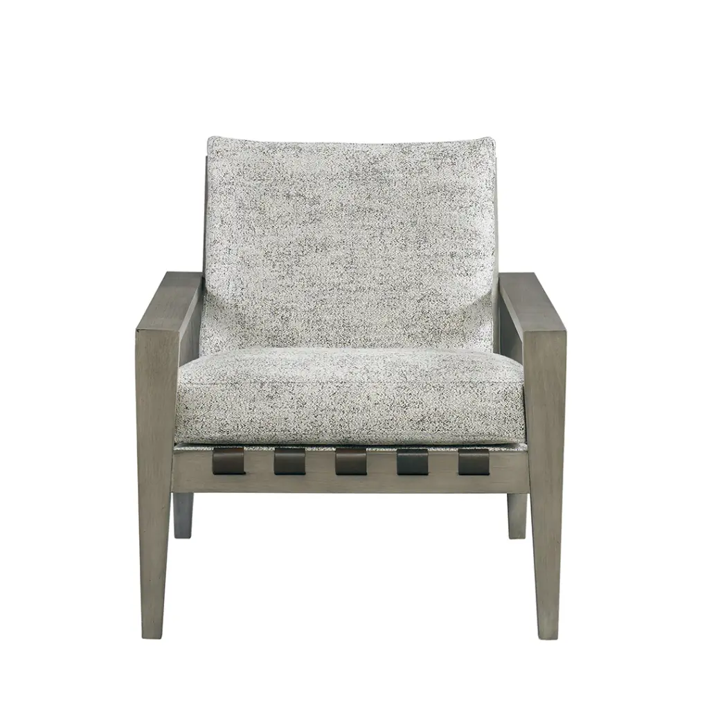 Both versatile and fashionable, the Lillian August Modern Living Mathew Chair is shown in an oasis ivory fabric and mineral finish.