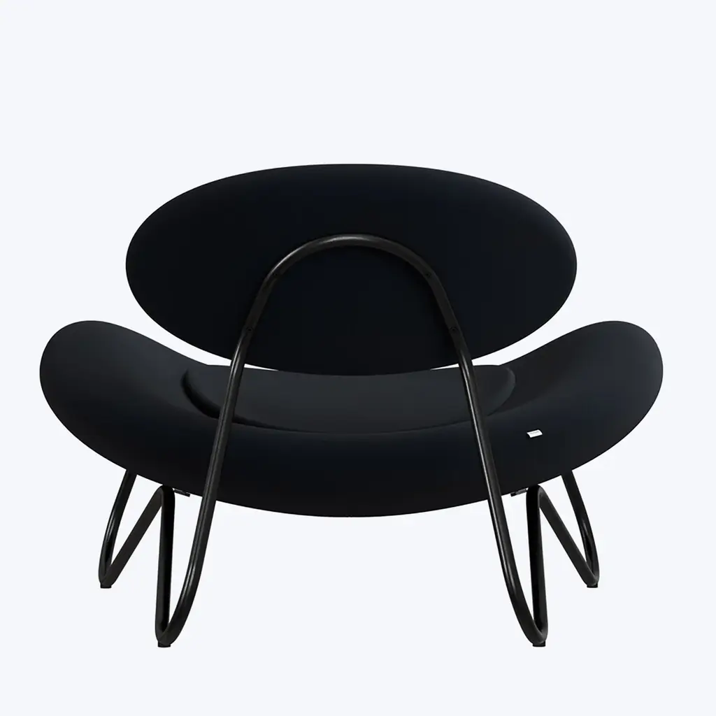 Transform your space with the Meadow Lounge Chair, a creation by Danish sculptural designer and artist, Finn Hvidberg Nielsen. Breaking free from the confines of conventional seating, this chair captures the essence of sitting in a grassy meadow, channeling the gentle sway of summer breezes and the tranquility of wide open spaces. Nielsen's approach to design seamlessly merges aesthetics and philosophy, weaving memory and inspiration into the fabric of new creations. From his studio on the picturesque island of Als, he draws inspiration from childhood memories and the serene landscapes of Denmark. Rooted in the desire to evoke the meadow experience, the chair's wide seat mirrors expansive open spaces, offering a comfortable seating experience that transcends the ordinary. The chair's metal frame sways gracefully, elevating the comfort experience by accommodating the natural movements of the human body. It boasts meticulous construction designed not just for utility but as an artful expression of the connection between design and human experience. Available in four distinct colors, featuring a black painted metal or chrome frame, each chair is paired with a coordinating slip-resistant cushion. The attention to detail extends beyond aesthetics, ensuring a seamless fusion of comfort and style. Indulge in the Meadow Lounge Chair--a testament to the harmonious intersection of nature, design, and the pursuit of elevated living. Crafted from high-quality materials, this chair presents a solid yet soaring silhouette, complemented by the gently swaying frame to provide an unparalleled and comfortable seating experience. FSC-certified WOUD, based in Copenhagen and founded by design veterans Mia and Torben Koed, guarantees responsible and sustainable craftsmanship for each product.