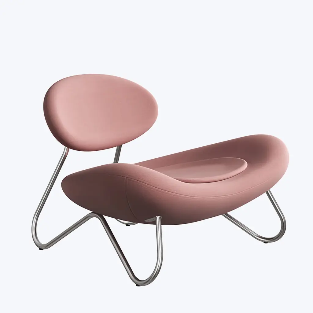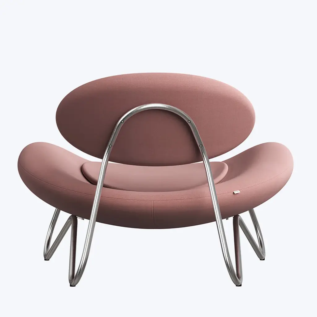 Transform your space with the Meadow Lounge Chair, a creation by Danish sculptural designer and artist, Finn Hvidberg Nielsen. Breaking free from the confines of conventional seating, this chair captures the essence of sitting in a grassy meadow, channeling the gentle sway of summer breezes and the tranquility of wide open spaces. Nielsen's approach to design seamlessly merges aesthetics and philosophy, weaving memory and inspiration into the fabric of new creations. From his studio on the picturesque island of Als, he draws inspiration from childhood memories and the serene landscapes of Denmark. Rooted in the desire to evoke the meadow experience, the chair's wide seat mirrors expansive open spaces, offering a comfortable seating experience that transcends the ordinary. The chair's metal frame sways gracefully, elevating the comfort experience by accommodating the natural movements of the human body. It boasts meticulous construction designed not just for utility but as an artful expression of the connection between design and human experience. Available in four distinct colors, featuring a black painted metal or chrome frame, each chair is paired with a coordinating slip-resistant cushion. The attention to detail extends beyond aesthetics, ensuring a seamless fusion of comfort and style. Indulge in the Meadow Lounge Chair--a testament to the harmonious intersection of nature, design, and the pursuit of elevated living. Crafted from high-quality materials, this chair presents a solid yet soaring silhouette, complemented by the gently swaying frame to provide an unparalleled and comfortable seating experience. FSC-certified WOUD, based in Copenhagen and founded by design veterans Mia and Torben Koed, guarantees responsible and sustainable craftsmanship for each product.