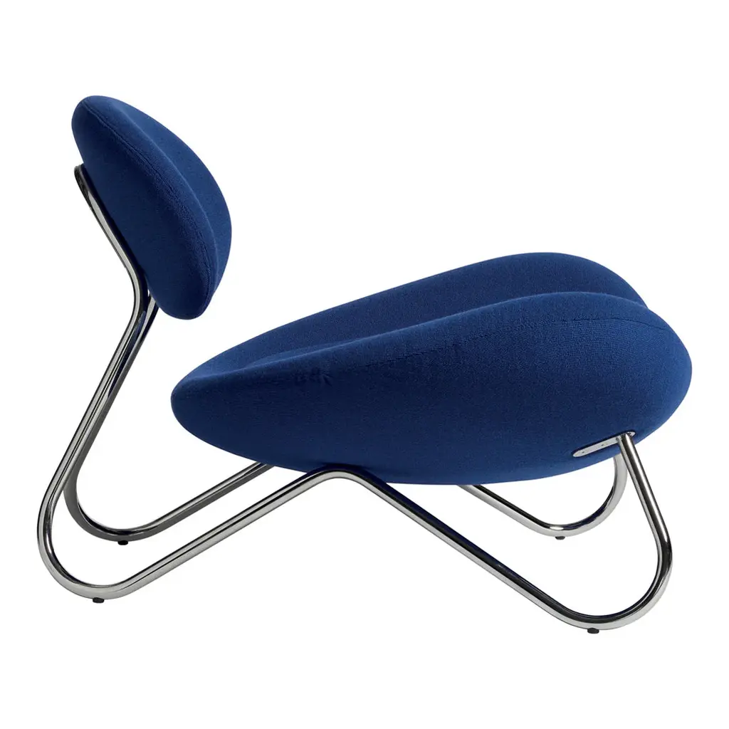 Meadow is characterised by amiable organic shapes and cur v y lines. Made from high-quality foam, the lounge chair persuasively portrays a solid yet soaring silhouette, while it offers a comfortable seating experience. A comfort that is enhanced by its wide seat combined with the lightly swaying metal frame. Constructed to support the movement of the human body. The Meadow lounge chair is available in WOUD's predefined upholstery price groups and comes in either black painted steel, chrome or brushed stainless steel with a matching slip-resistant cushion.