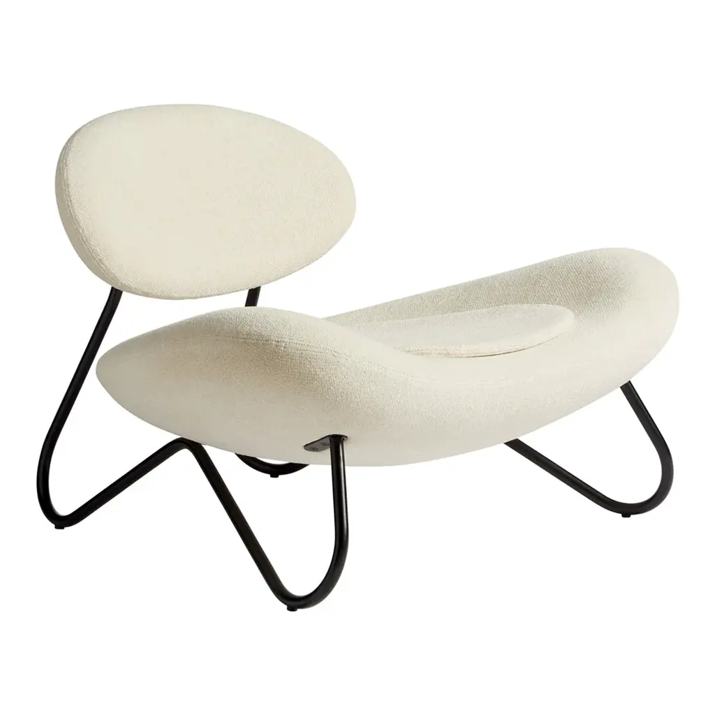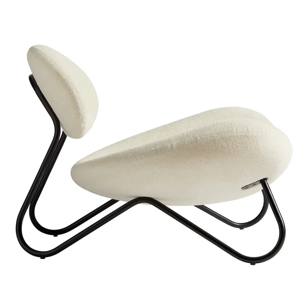 Meadow is characterised by amiable organic shapes and cur v y lines. Made from high-quality foam, the lounge chair persuasively portrays a solid yet soaring silhouette, while it offers a comfortable seating experience. A comfort that is enhanced by its wide seat combined with the lightly swaying metal frame. Constructed to support the movement of the human body. The Meadow lounge chair is available in WOUD's predefined upholstery price groups and comes in either black painted steel, chrome or brushed stainless steel with a matching slip-resistant cushion.