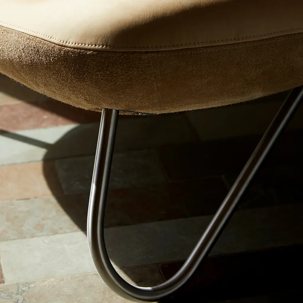 Meadow is characterised by amiable organic shapes and cur v y lines. Made from high-quality foam, the lounge chair persuasively portrays a solid yet soaring silhouette, while it offers a comfortable seating experience. A comfort that is enhanced by its wide seat combined with the lightly swaying metal frame. Constructed to support the movement of the human body. The Meadow lounge chair is available in WOUD's predefined upholstery price groups and comes in either black painted steel, chrome or brushed stainless steel with a matching slip-resistant cushion.