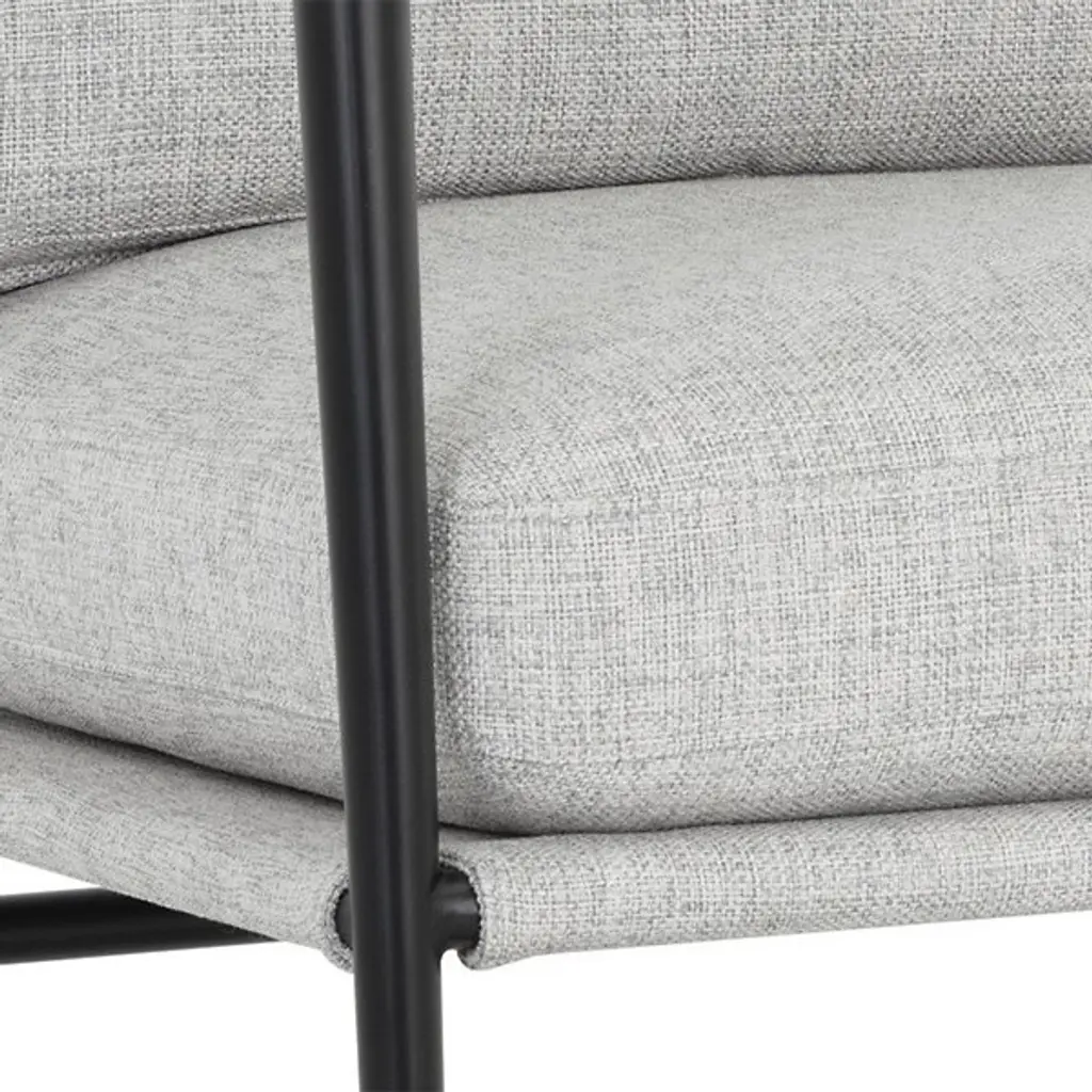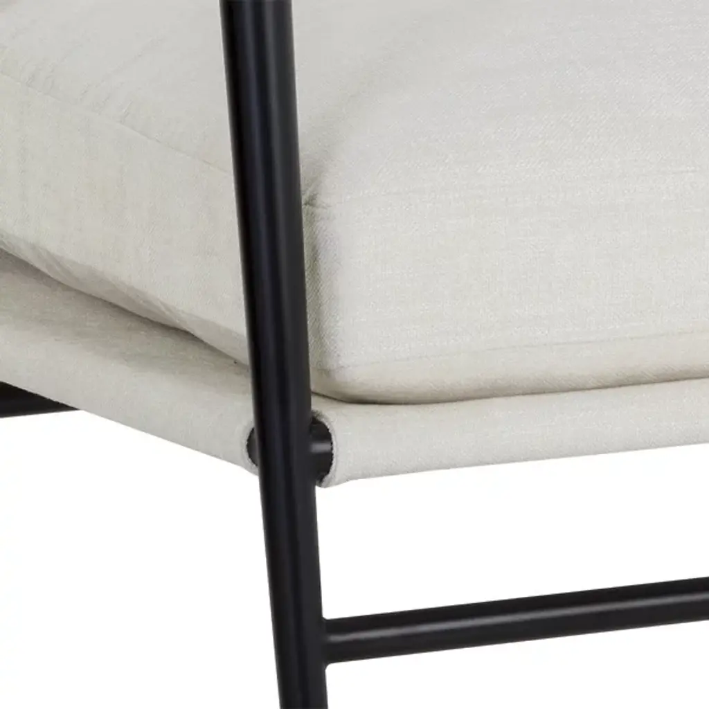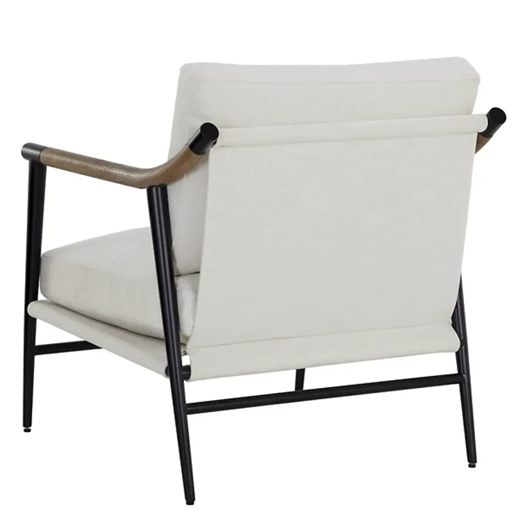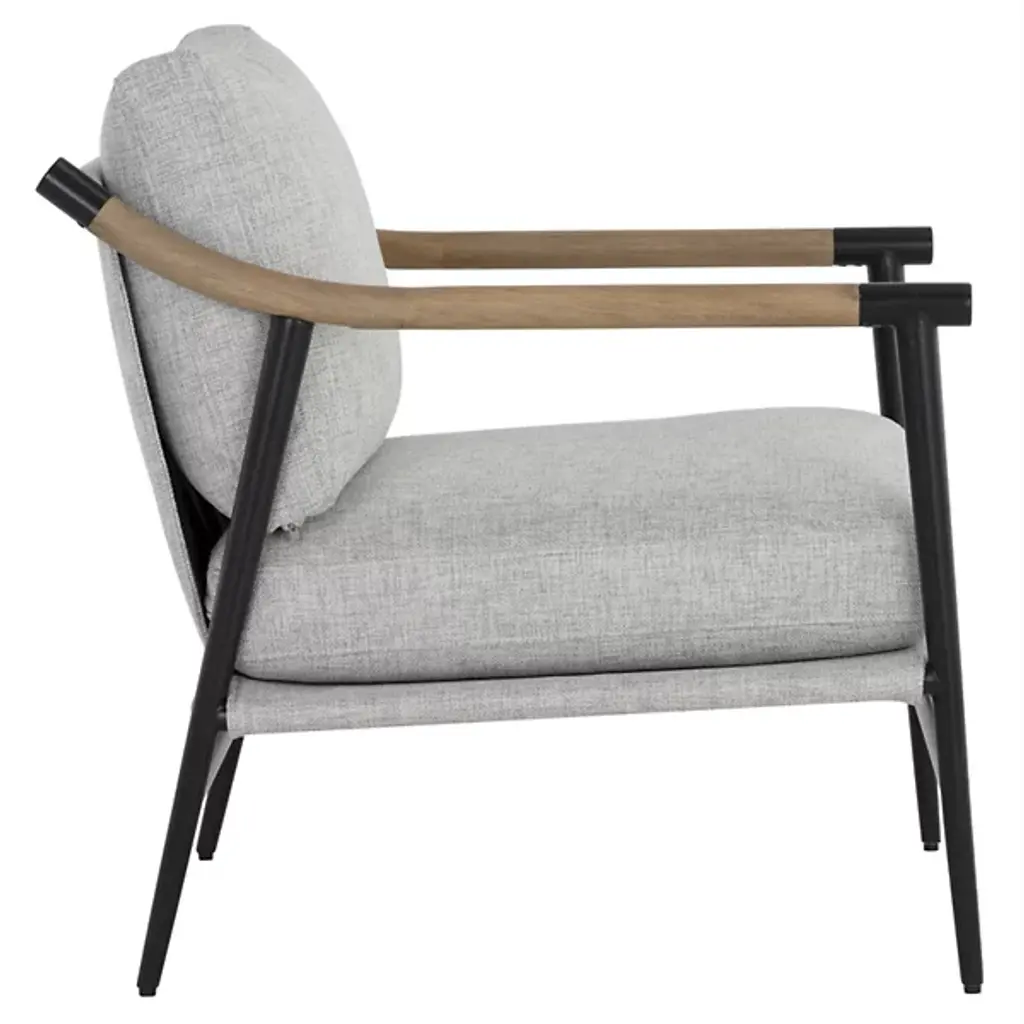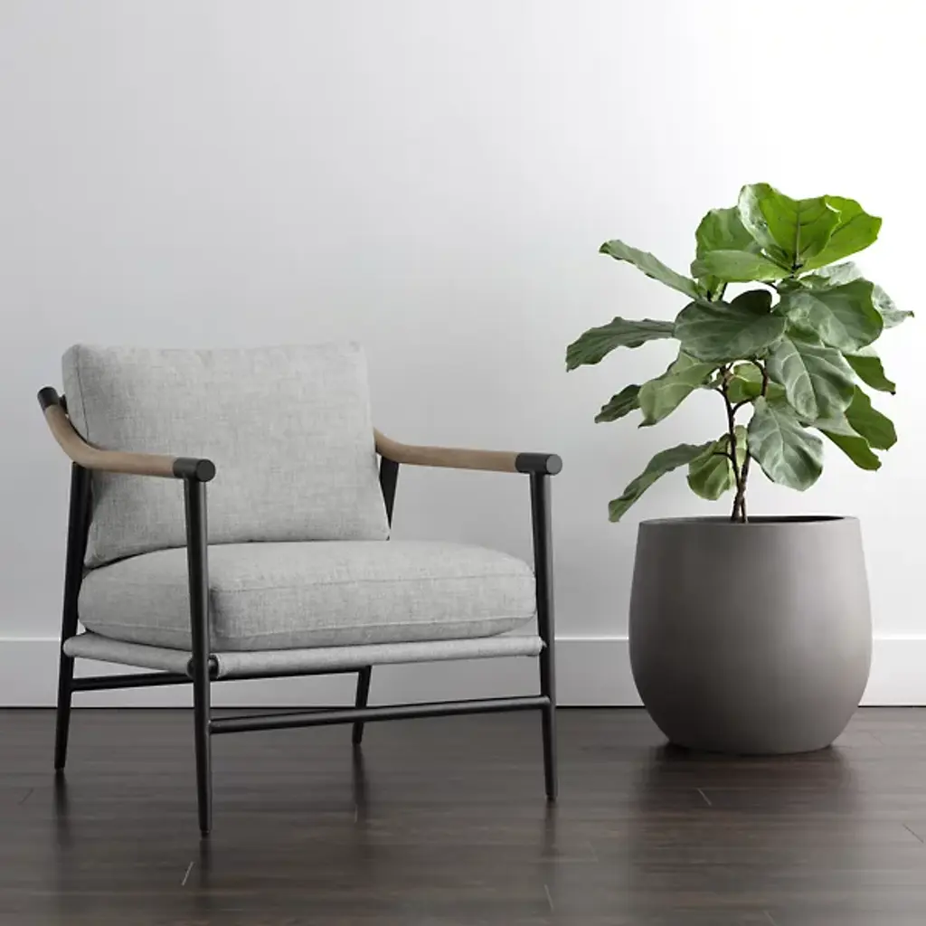 Provide layered comfort to your interiors with the Meadow Lounge Chair from Sunpan, where retro design meets modern functionality. This sophisticated piece features a clean silhouette wrapped in soft performance fabric, offering superior stain and moisture resistance for easy maintenance. The striking combination of matte black iron framework and solid oak wood armrests held between the metal creates an artful balance of natural and industrial elements. Each chair showcases the unique character of wood, with distinct grain patterns and organic variations making every piece unique.
