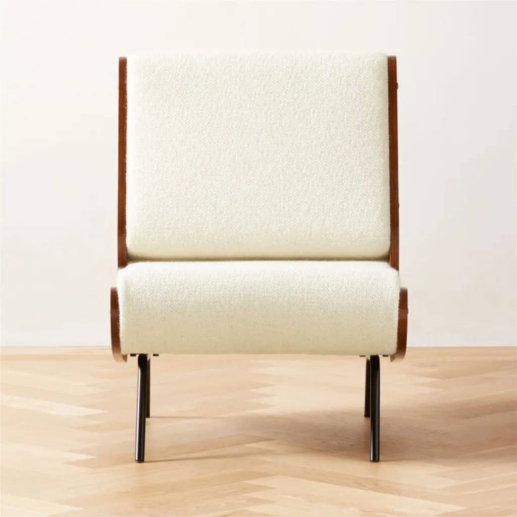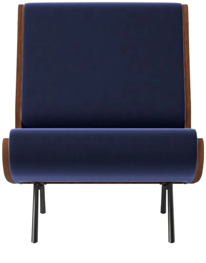 Designed early in Gianfranco Frattini's career, this streamlined lounge chair evokes the poetic minimalism of 1950s modernism. The now-iconic Italian design has been updated. Structurally held together by exquisite walnut side panels, the geometry is true to the originaldown to the brass snake-eye bolts. Meant to be read from the side, its full beauty becomes apparent in profile. CB2 exclusive.