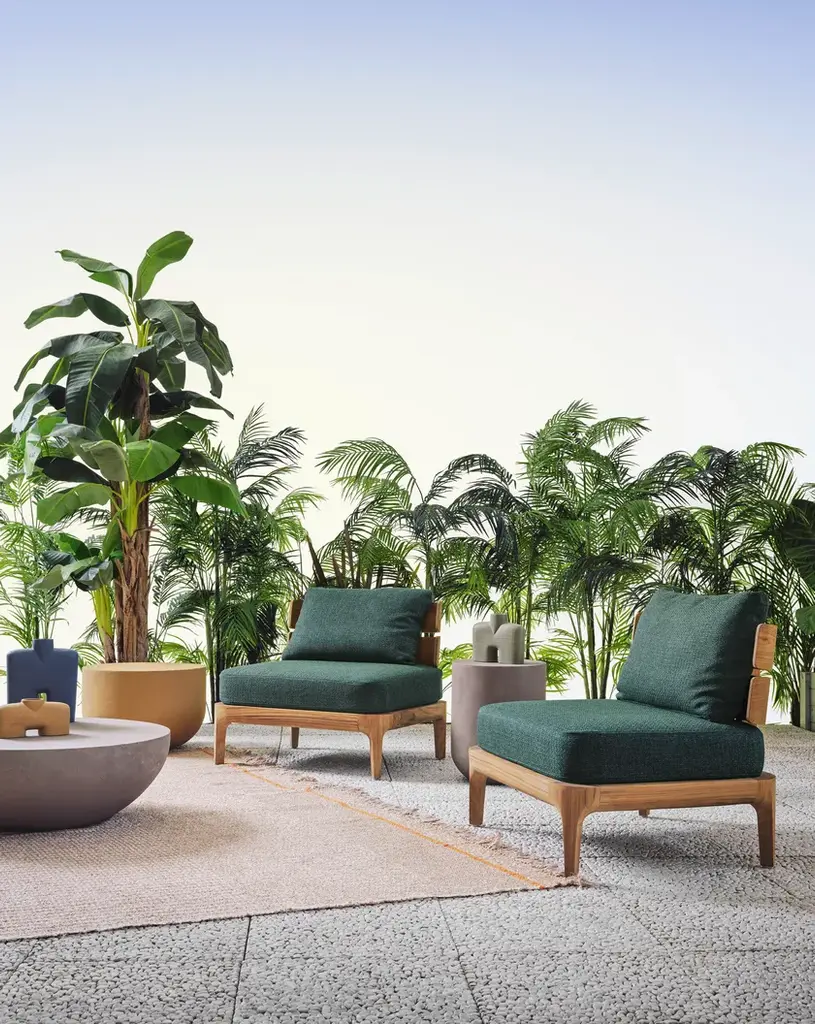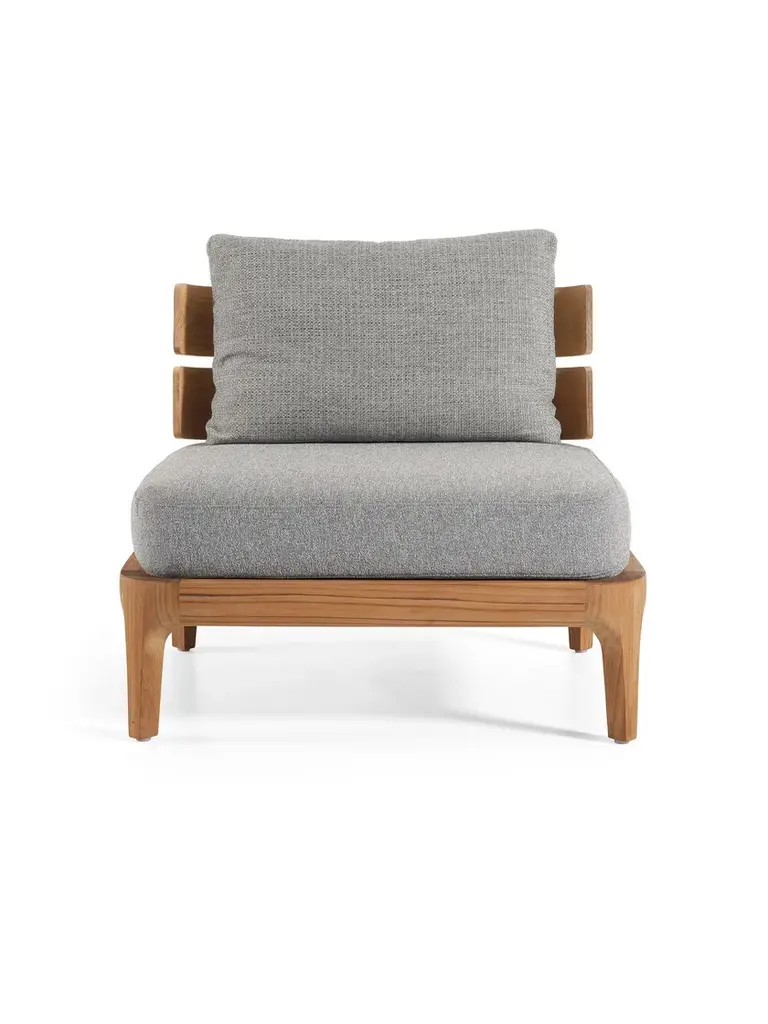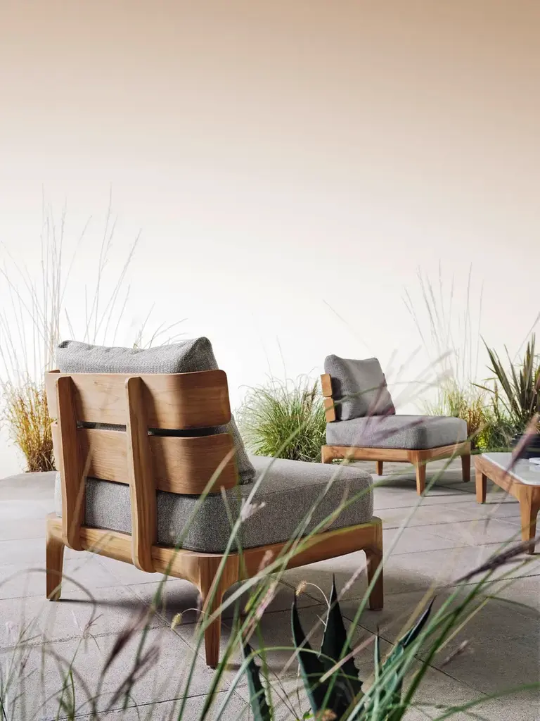 Lounge chair, teak frame, cushions with removable cover.Mediterraneo by Francesco Meda is an elegant expression of living products that captures the beauty of timeless furniture. Each piece is characterised by a Teak frame that has been skilfully treated to give an essential, simple and extraordinarily natural touch. An apparent contrast between the sturdy solidity of the wood and the generous stuffing of the seats is revealed in a harmonious balance in which the curved and rounded teak gives off a feeling of incredible softness, as do the prominent seat pillows. The seats, characterised by an enveloping backrest that seems to embrace those who sit on them, amplify an experience of comfort. Francesco Meda's distinctive signature emerges in every detail, blending functionality with the aesthetics of the wood, pillows and marble used on the tables.The Gervasoni Outdoor collection is the result of a careful selection of natural and technical materials worked with skillful craftsmanship and innovative technologies. The company’s products adapt to different styles of outdoor living, furnishing – with absolute ease, elegance and free customisation – terraces, gardens or swimming pools, from the most urban and contemporary to the most sophisticated or surrounded by nature. Each place has its own unique character that must be respected and enhanced. The key features of the range are, as always, attention to detail, excellent workmanship and in-depth research into materials.