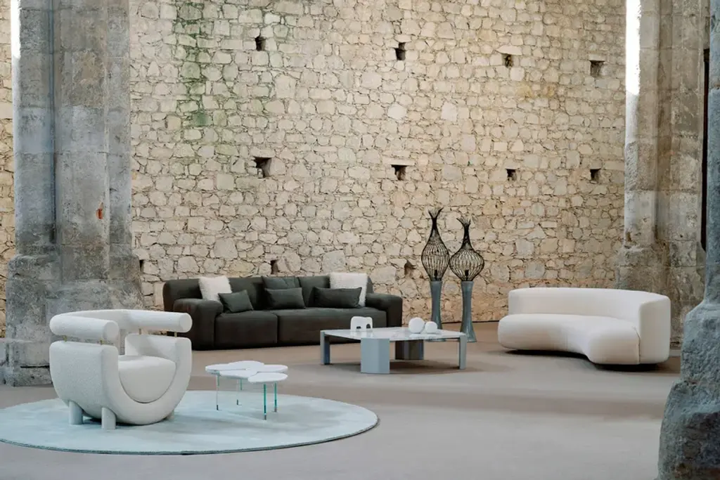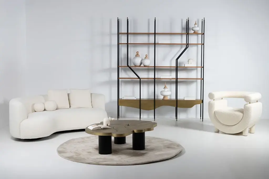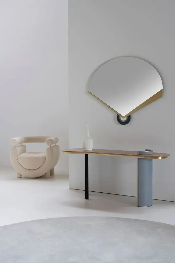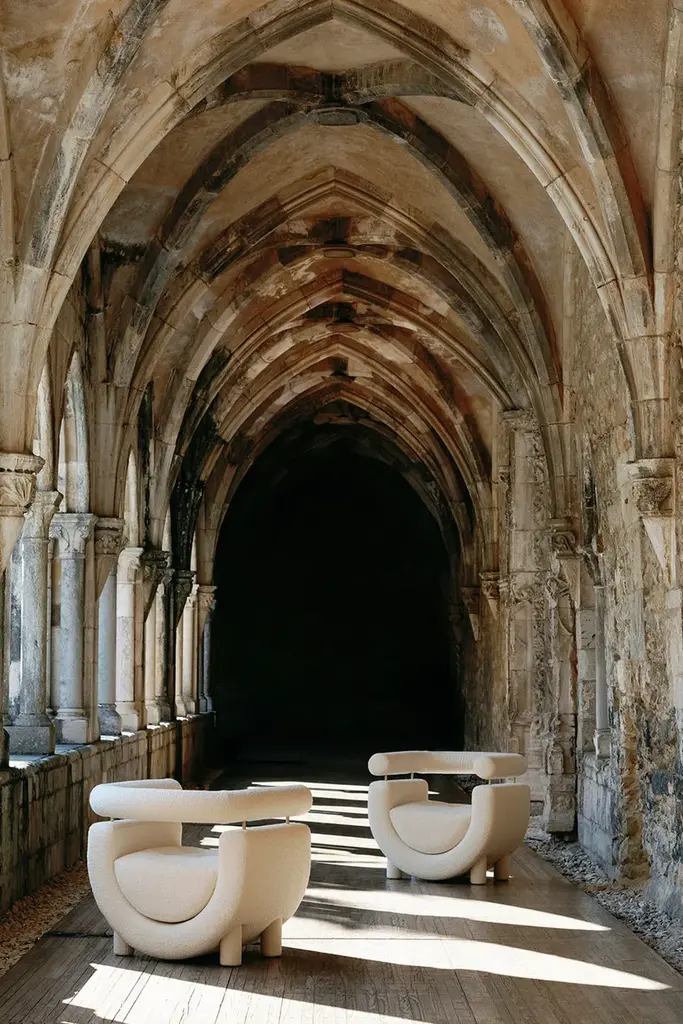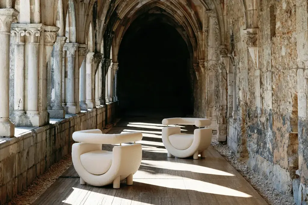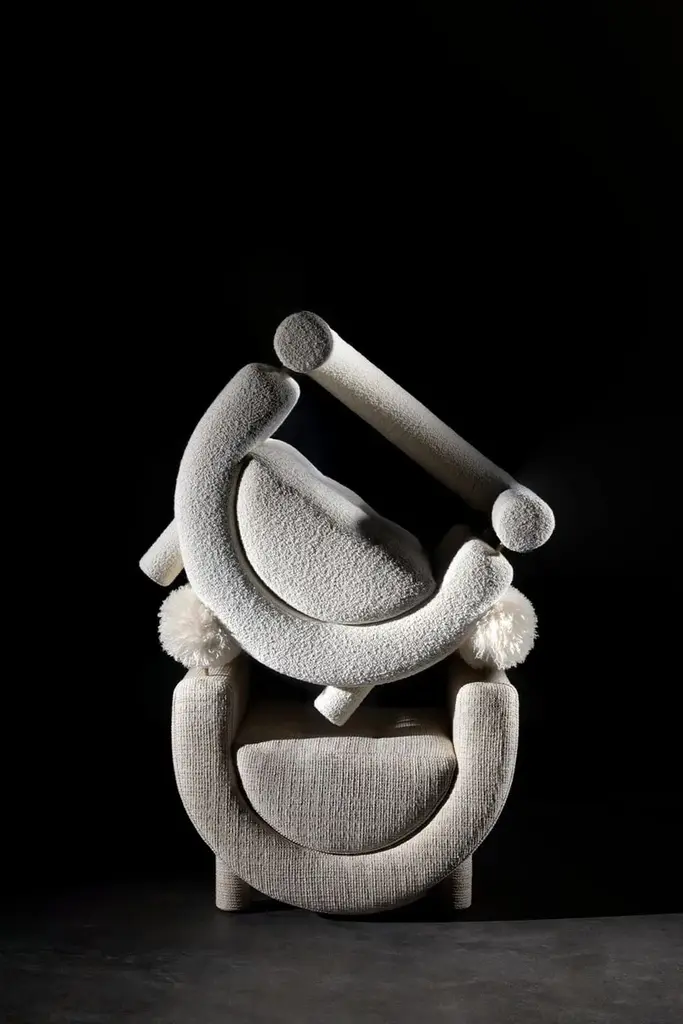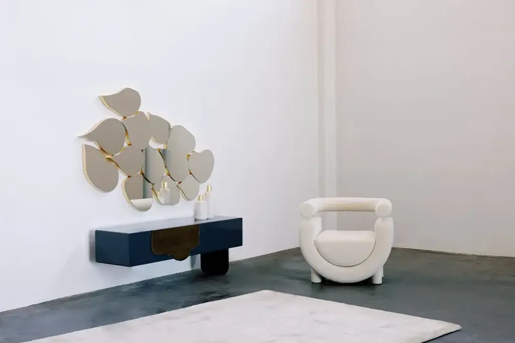 MEL - honey - embodies the soothing feeling of nature's purest and sweetest gift. A relaxing and cozy armchair made just for you, with undeniable therapeutic benefits. Upholstered in DEDAR white bouclé fabric it adds an elegant touch to any corner.Materials & FinishesM103613 Dedar White cotton-linen blend bouclé fabricME030 Brushed brass; matt finish