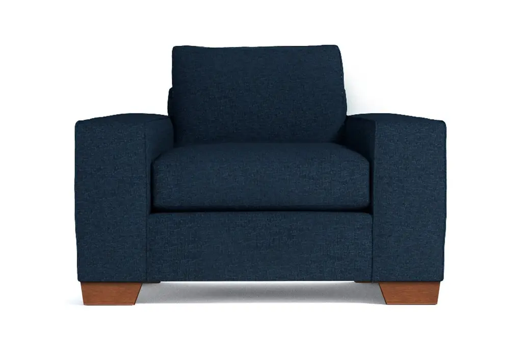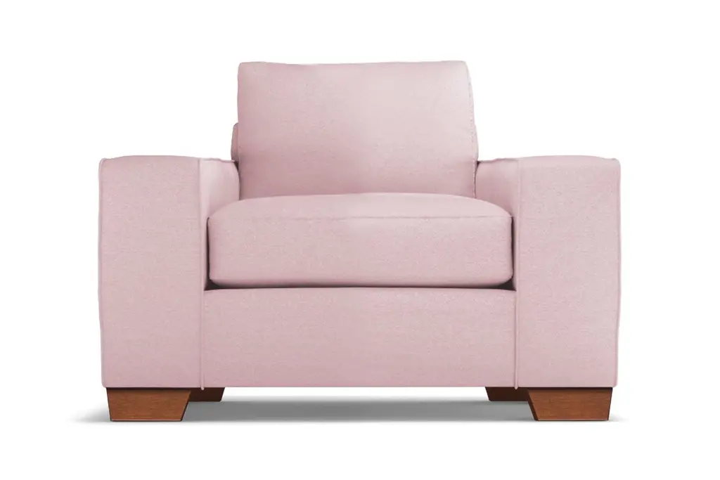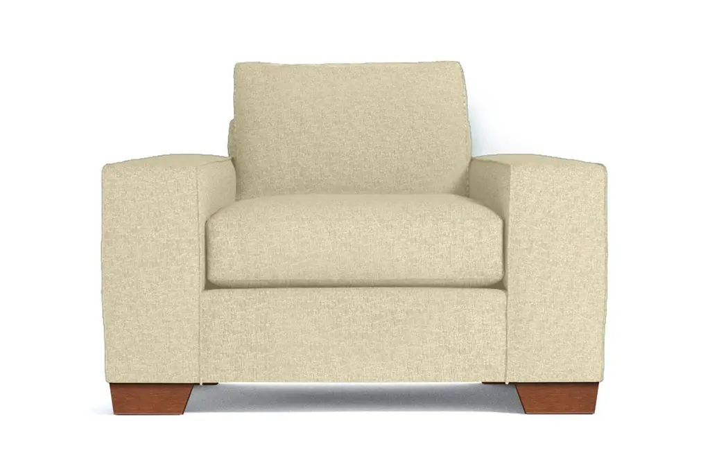 There's a place where uncompromising comfort and modern style meet - and that place is this Melrose Chair. Available in a wide range of fabric upholstery color choices and three wood leg finish choices (Natural, Pecan and Espresso), this chair can be custom ordered to fit any and every color scheme. With a deep and comfortable seat depth of over 2 feet, this Melrose Chair is the perfect seat to curl up into for a movie night or an afternoon with your favorite book. Order yours in modern and neutral Coal, trendy and bold Pumpkin or one of the over 15 different fabric colors available here at Apt2B today! This collection has the hottest look around right now! With stylish wide track arms and a low-rise design, the Melrose Collection will most definitely add a lot of look to your living room. Upholstered in a soft and durable poly-blend fabric.