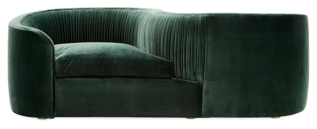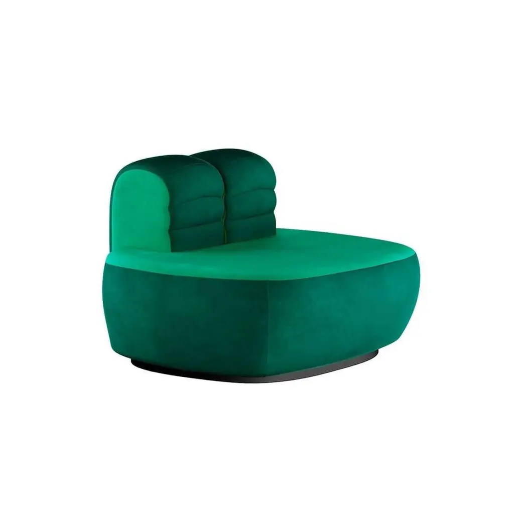 Memphis Design Style Plumy Armchair Upholstered In Green Velvet W Curved Shape