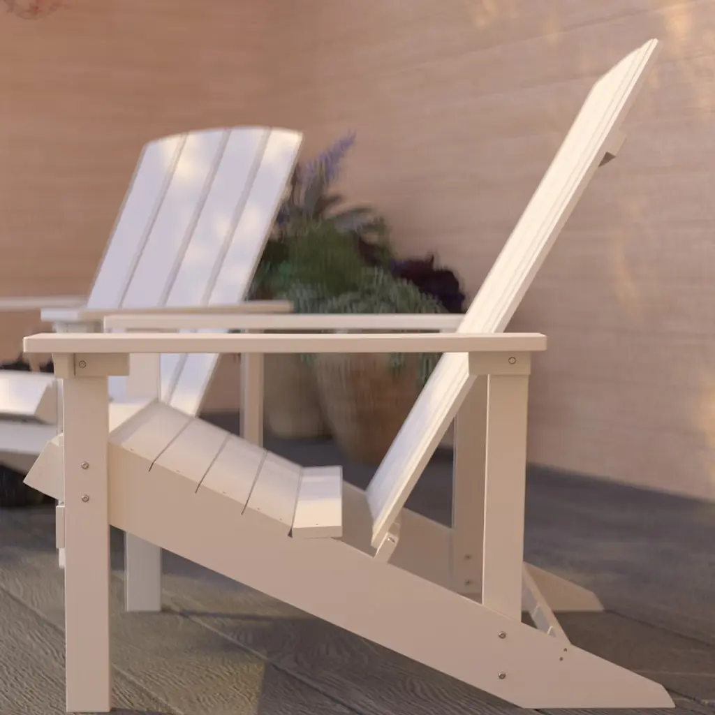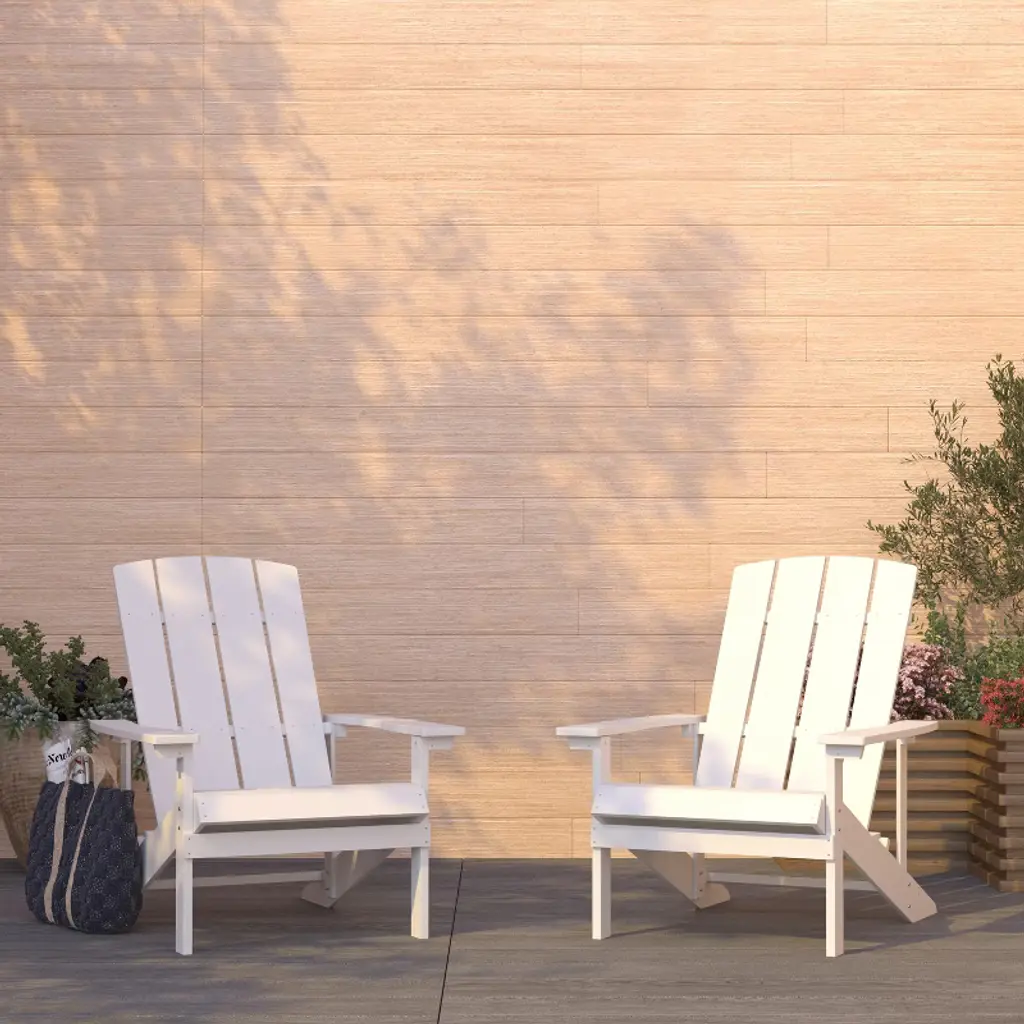 Merrick Lane Set Of 2 White Adirondack Patio Chairs With Vertical Lattice Back And Weather Resistant Frame