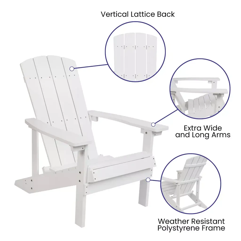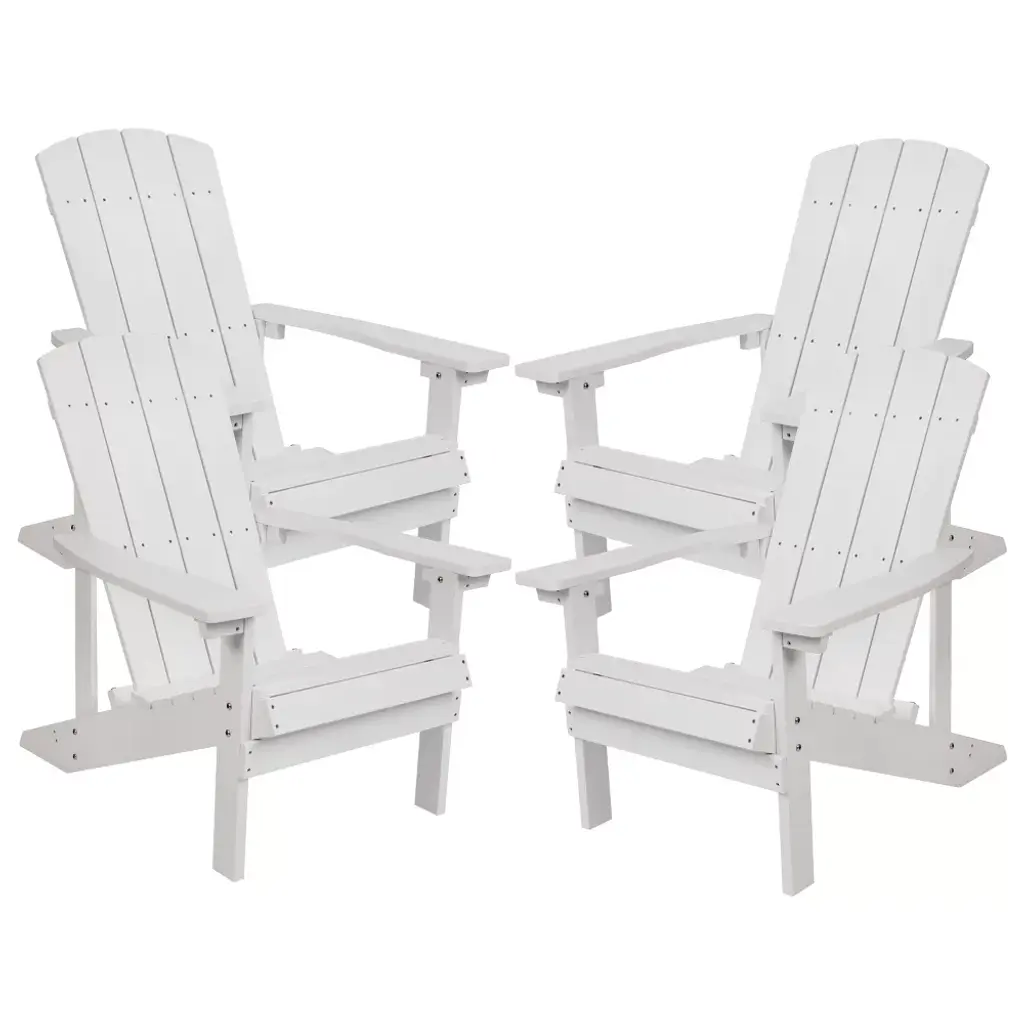 Merrick Lane Set Of 4 All-weather Poly Resin Wood Adirondack Chairs In White