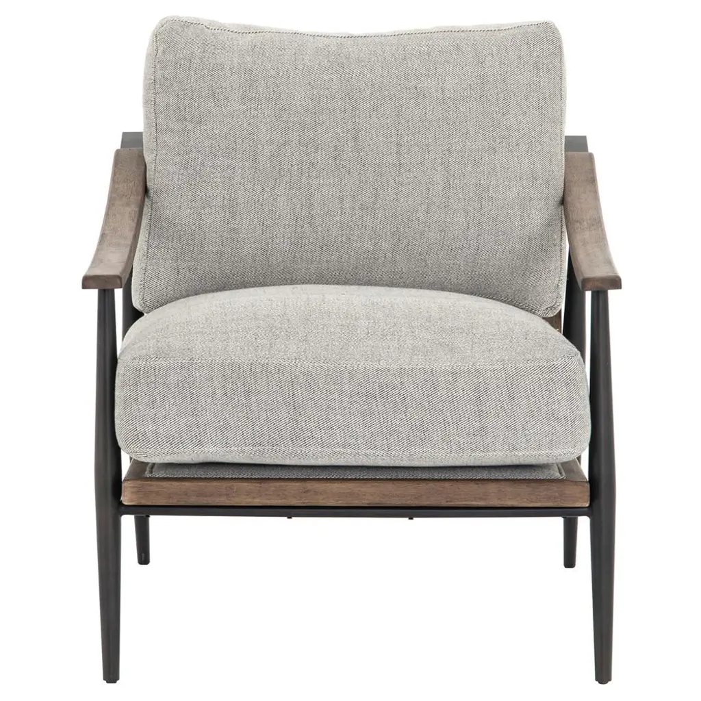 The Mesa outdoor chair has mid century style constructed of weathered teak with upholstered quick dry cushions. Brand: Restoration Hardware. Model: Mesa. Original Price: $2760. Dimensions (in): 31W x 36D x 29H.