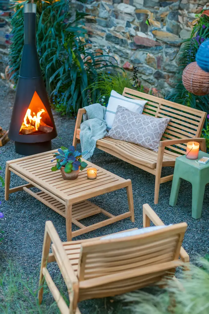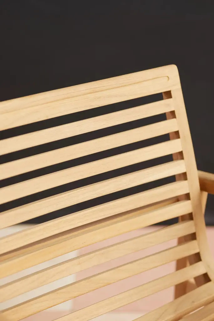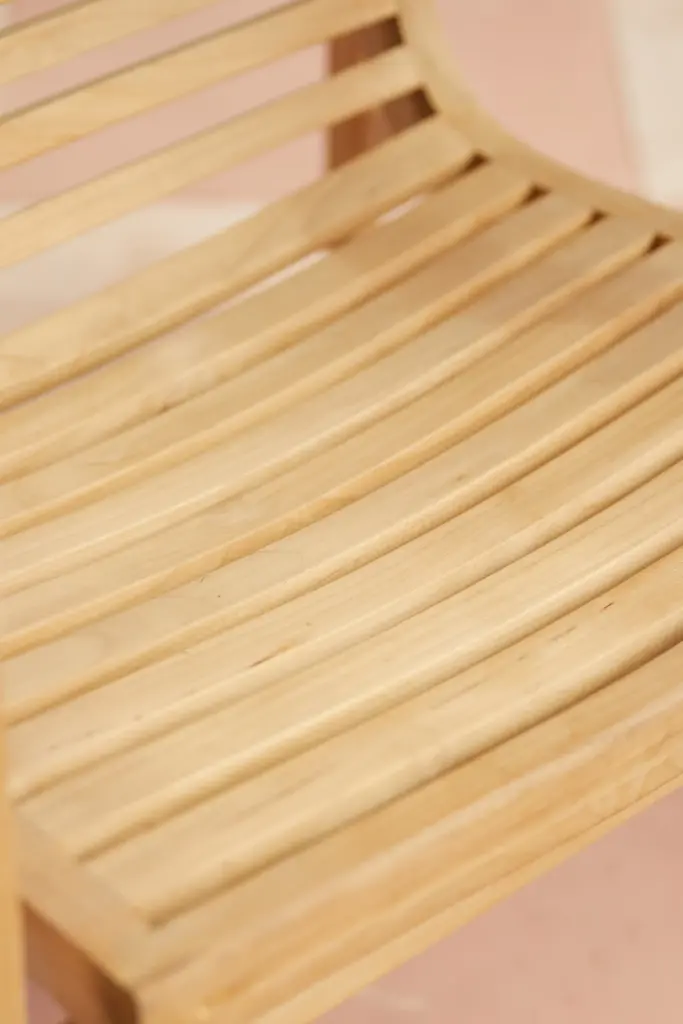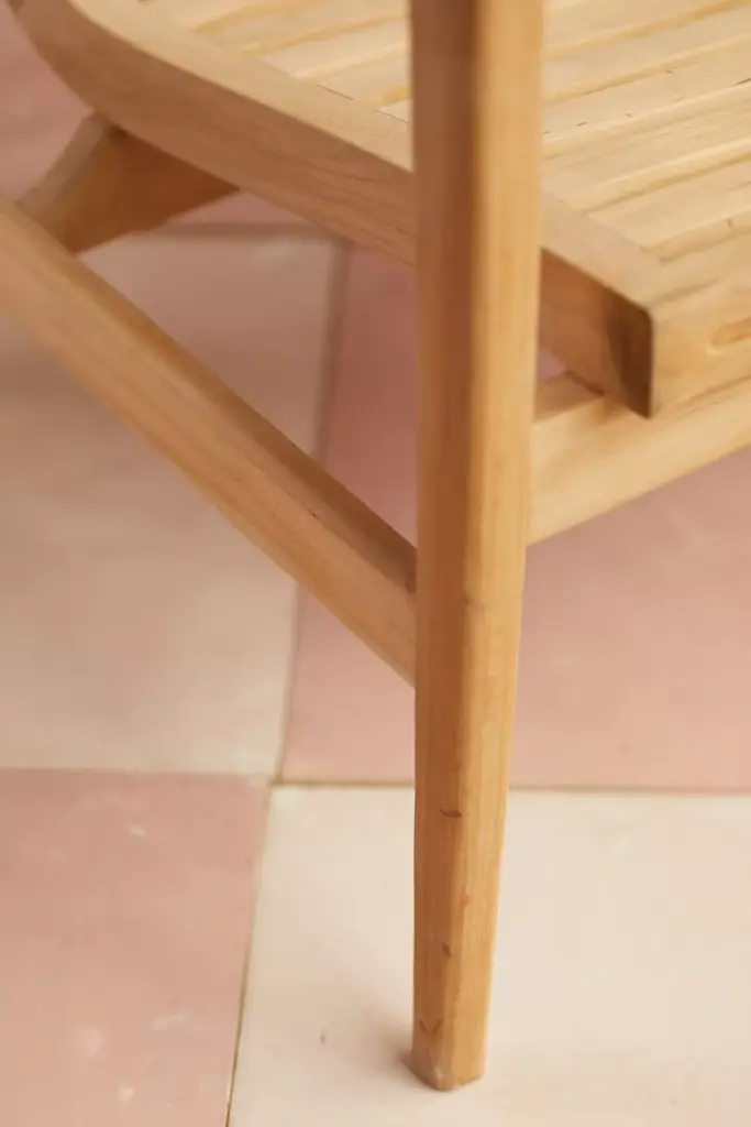 Defined by its warmed golden color and slatted design, the mesa lounge chair is constructed from durable teak for years of use in the garden.