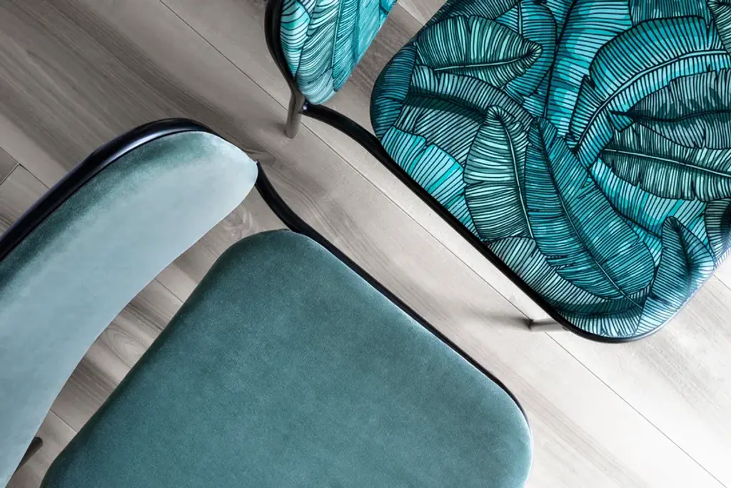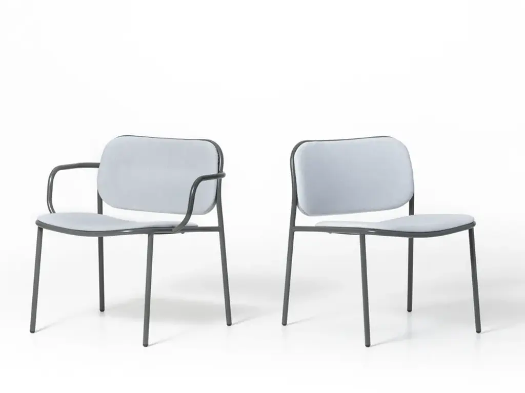 Metis Pad is a lounge with painted metal structure, stackable with seat and back upholstered in fabric, leather, eco-leather, velvet.Metis collection, metal structure, with seat and back in perforated sheet metal, metal wire, wood or padded, stackable, for indoor or outdoor, ideal for hotels, restaurants.