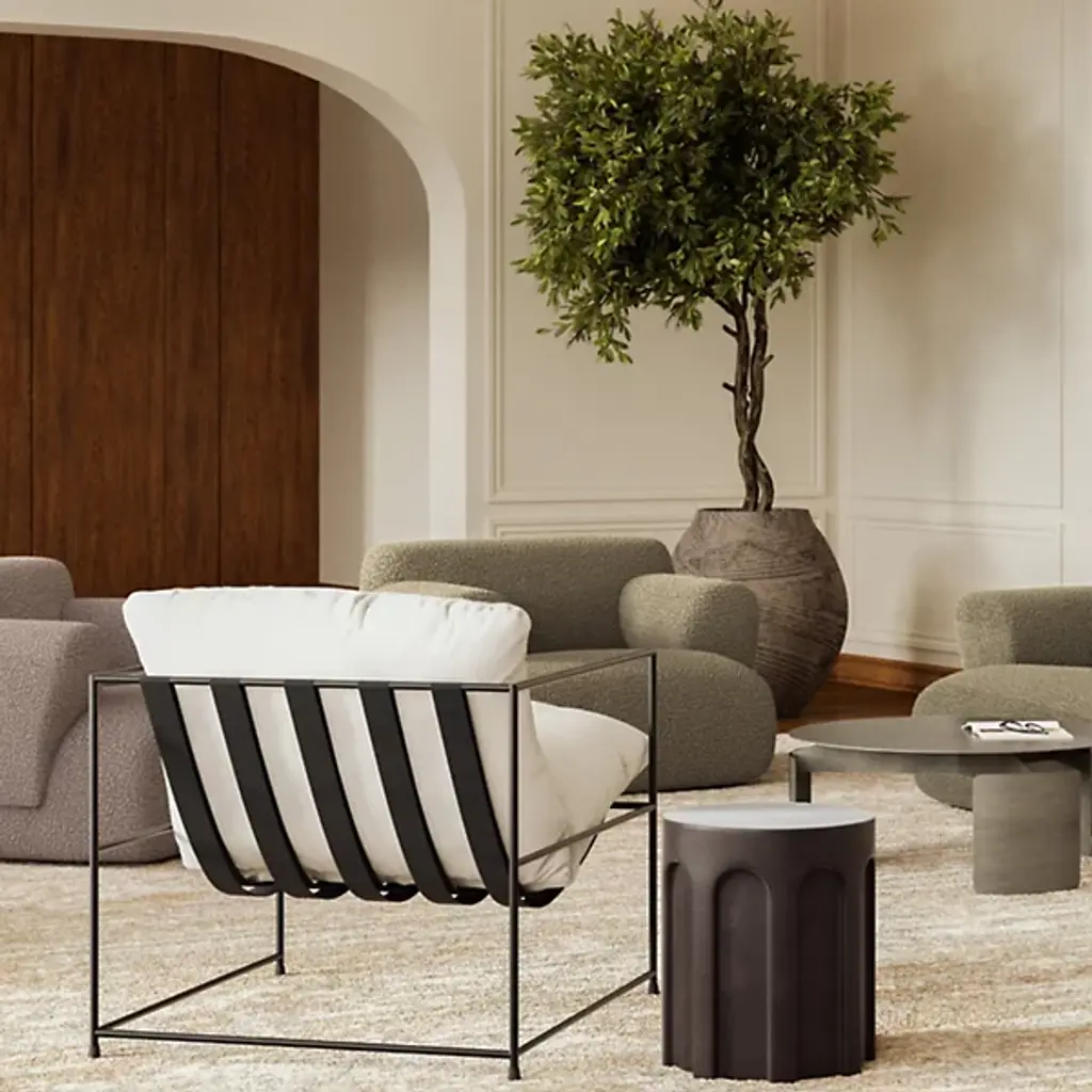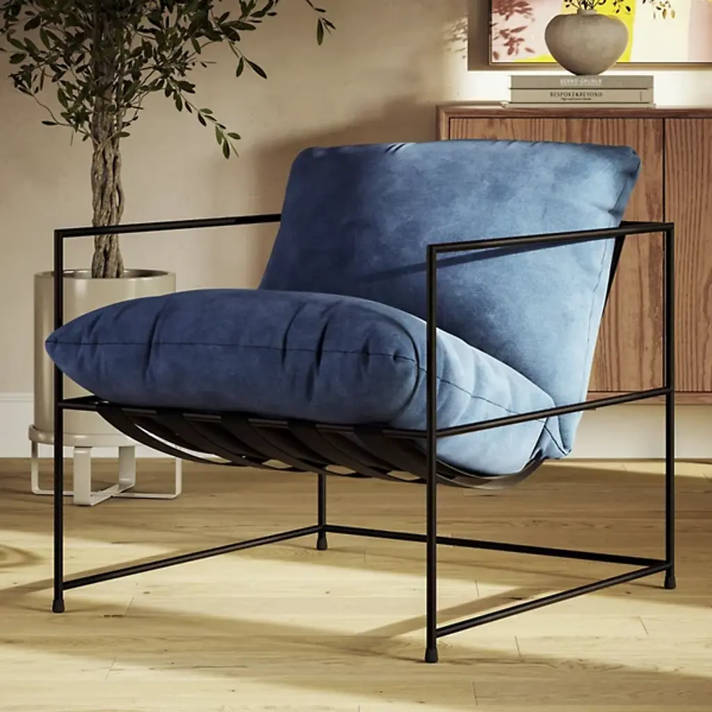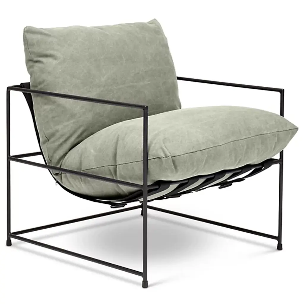 Two unique looks united as one. Sporting an unlikely combination of motifs, the Metro Trent Accent Chair by Urbia mixes an elegant, slender frame with the cozy look and feel of plush, overstuffed cushions. This chair's hammock-like seat accommodates any occupant with personalized comfort while its contrasting design allows it to fit in with any aesthetic concept.