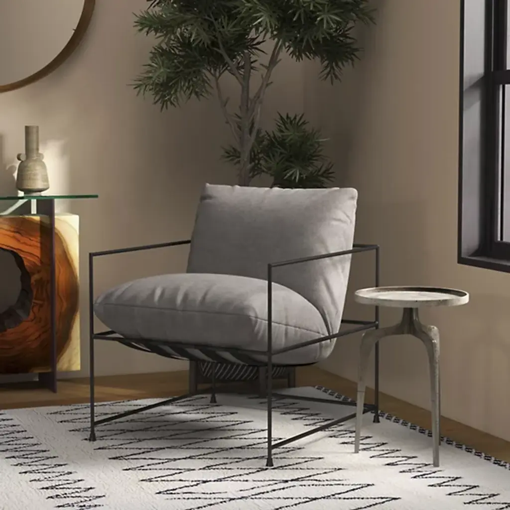 Two unique looks united as one. Sporting an unlikely combination of motifs, the Metro Trent Accent Chair by Urbia mixes an elegant, slender frame with the cozy look and feel of plush, overstuffed cushions. This chair's hammock-like seat accommodates any occupant with personalized comfort while its contrasting design allows it to fit in with any aesthetic concept.