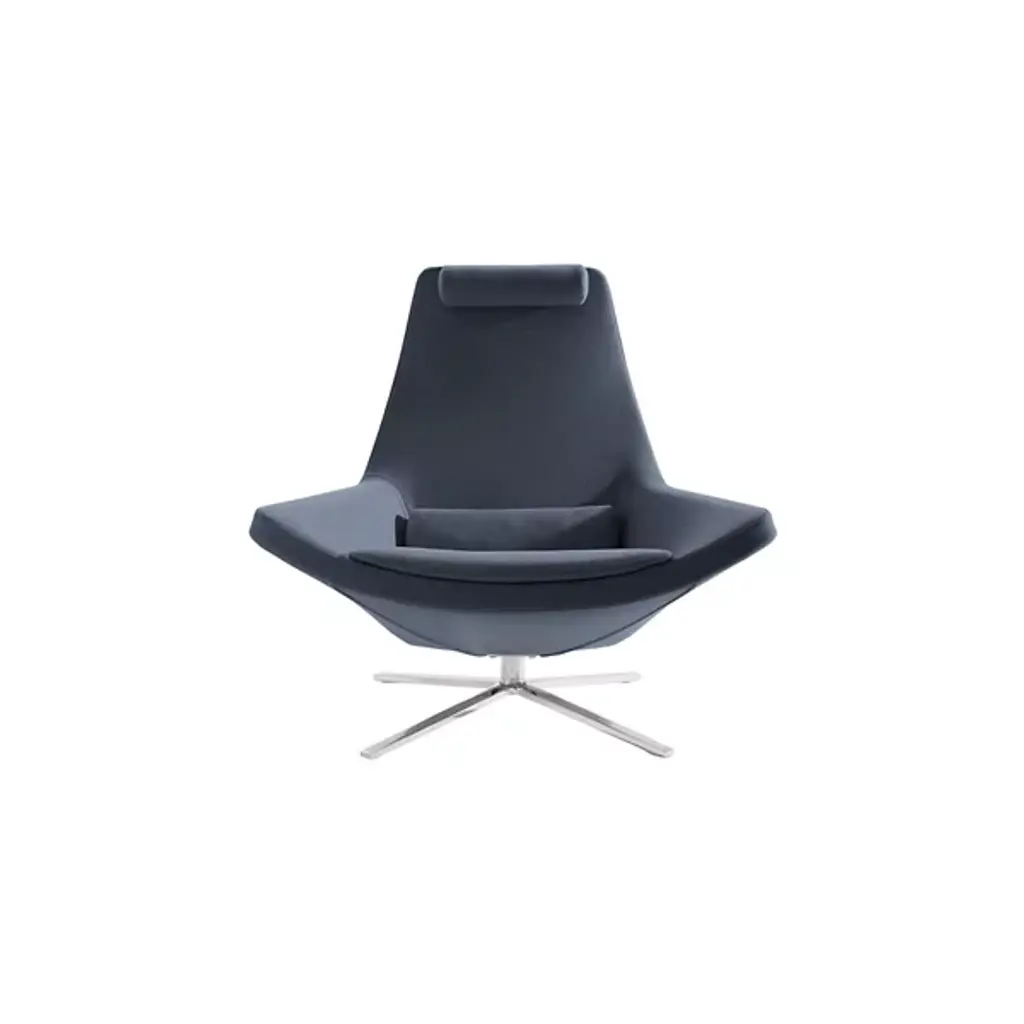 The seat that flows uninterruptedly into the armrests is the hallmark of this armchair. With a swivel base in aluminum with four spokes, it combines elegance and comfort. Supplied with headrest with magnets for adjustments. The seat that flows uninterruptedly into the armrests is the hallmark of this armchair. With a swivel base in aluminum with four spokes, it combines elegance and comfort. Supplied with headrest with magnets for adjustments.