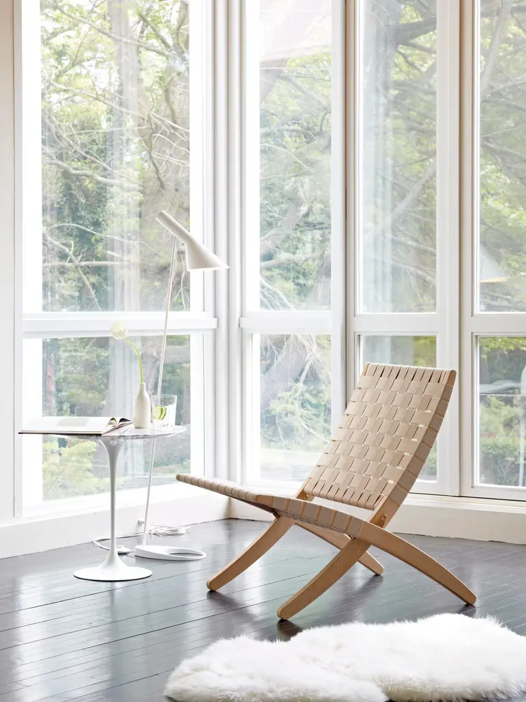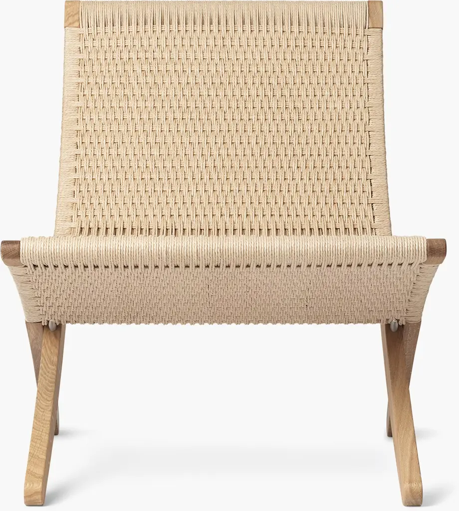 Denmark native Morten Gøttler is known for simple pieces with an airy look and exquisite feel. His Cuba Lounge Chair (1997) is one such piece, with a clean, smooth profile and handwoven cotton straps. As sturdy as it is alluring from all sides, the chair features a rugged frame assembled with spigot joints and held together by heavy-duty brass hinge mechanisms. Light and flexible, Cuba will be equally at home in modern living rooms or open kitchens. Folds for easy storage. Made in Denmark.