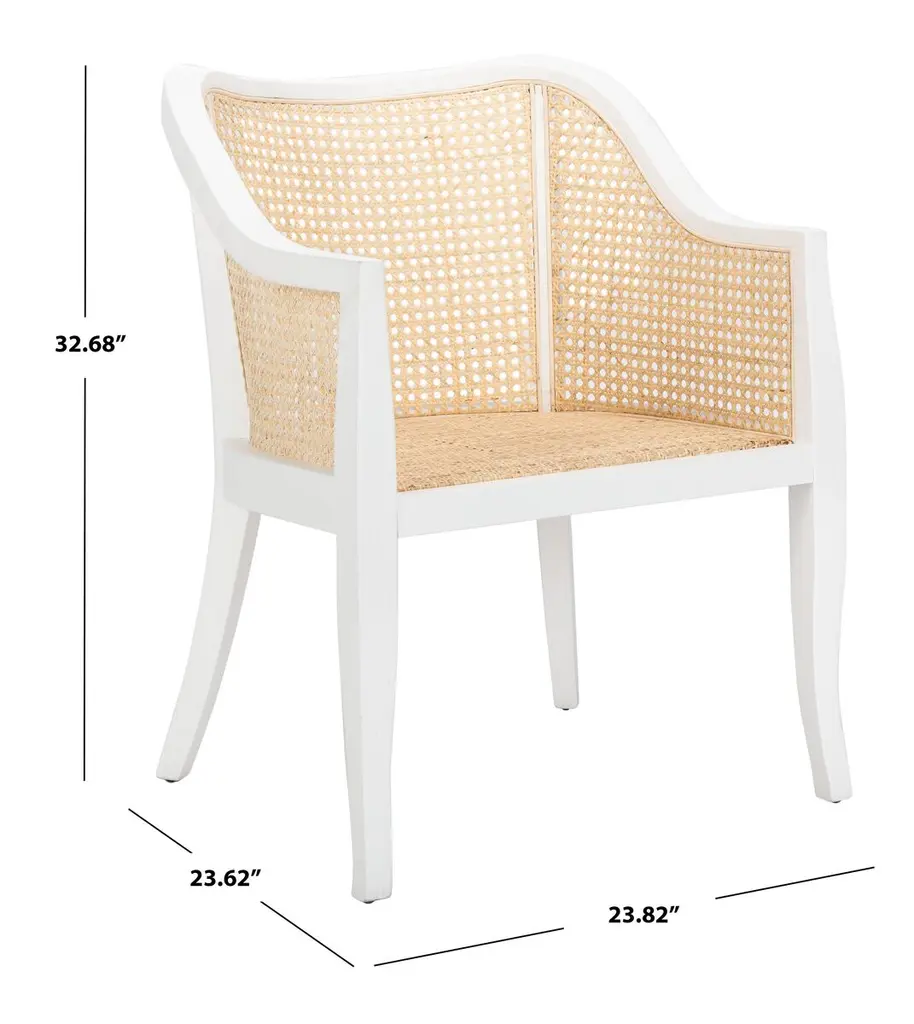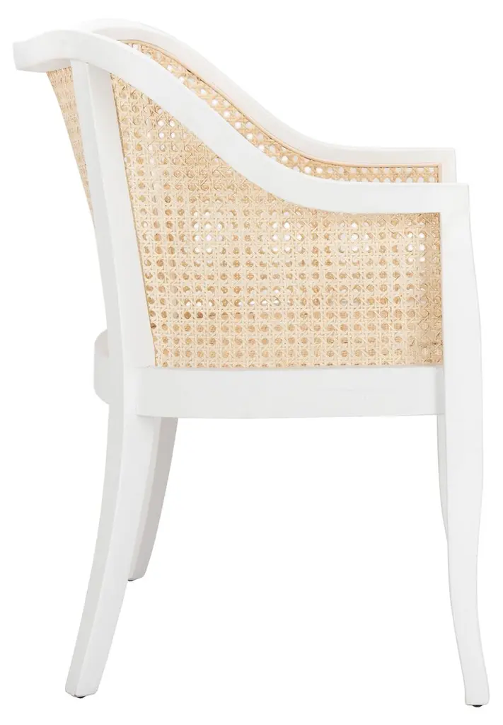 Suitable for any style of decor, this chair pairs natural caning with a beautifully curved wood frame. A foam-filled seat cushion welcomes guests with long-lasting comfort and support.