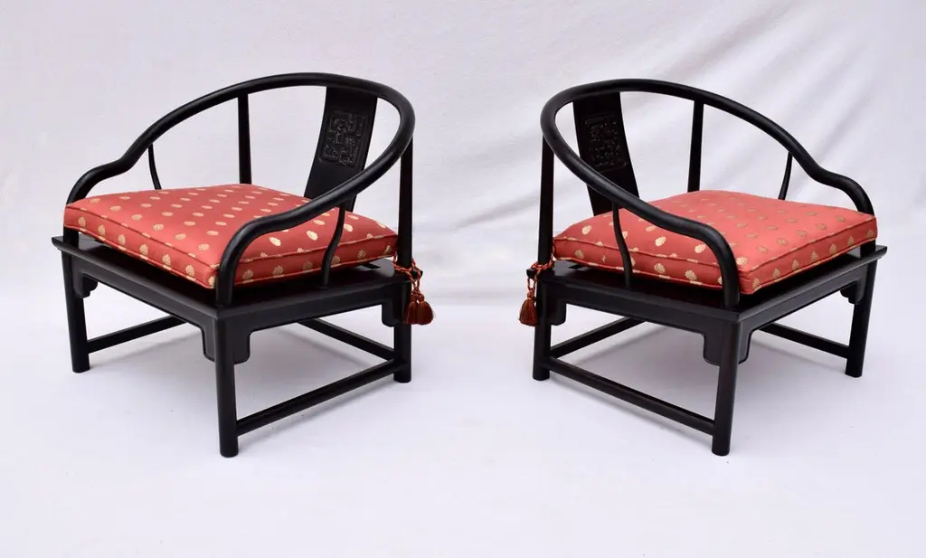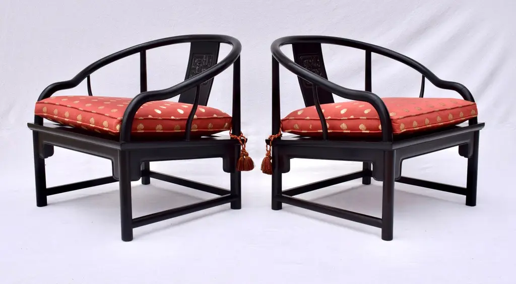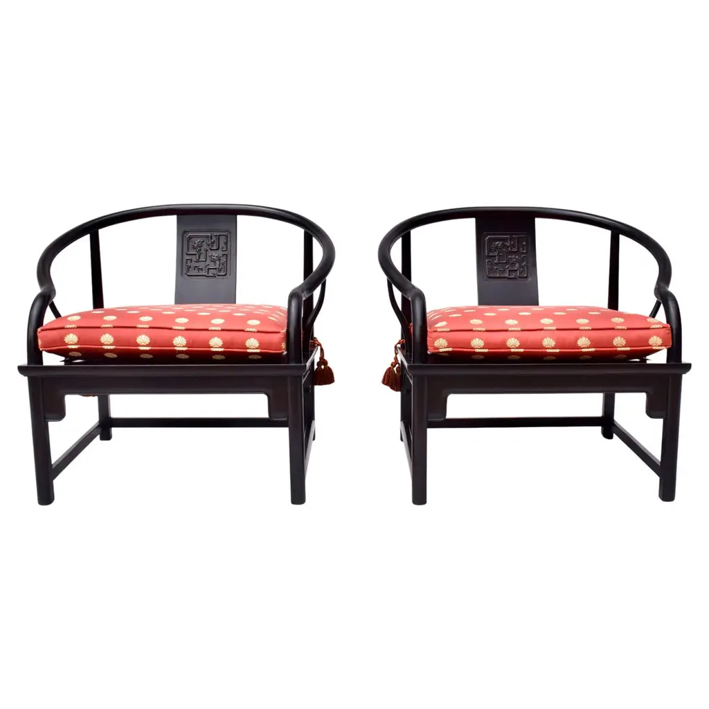 Mid 20th Century Ebony Horseshoe Lounge Chairs