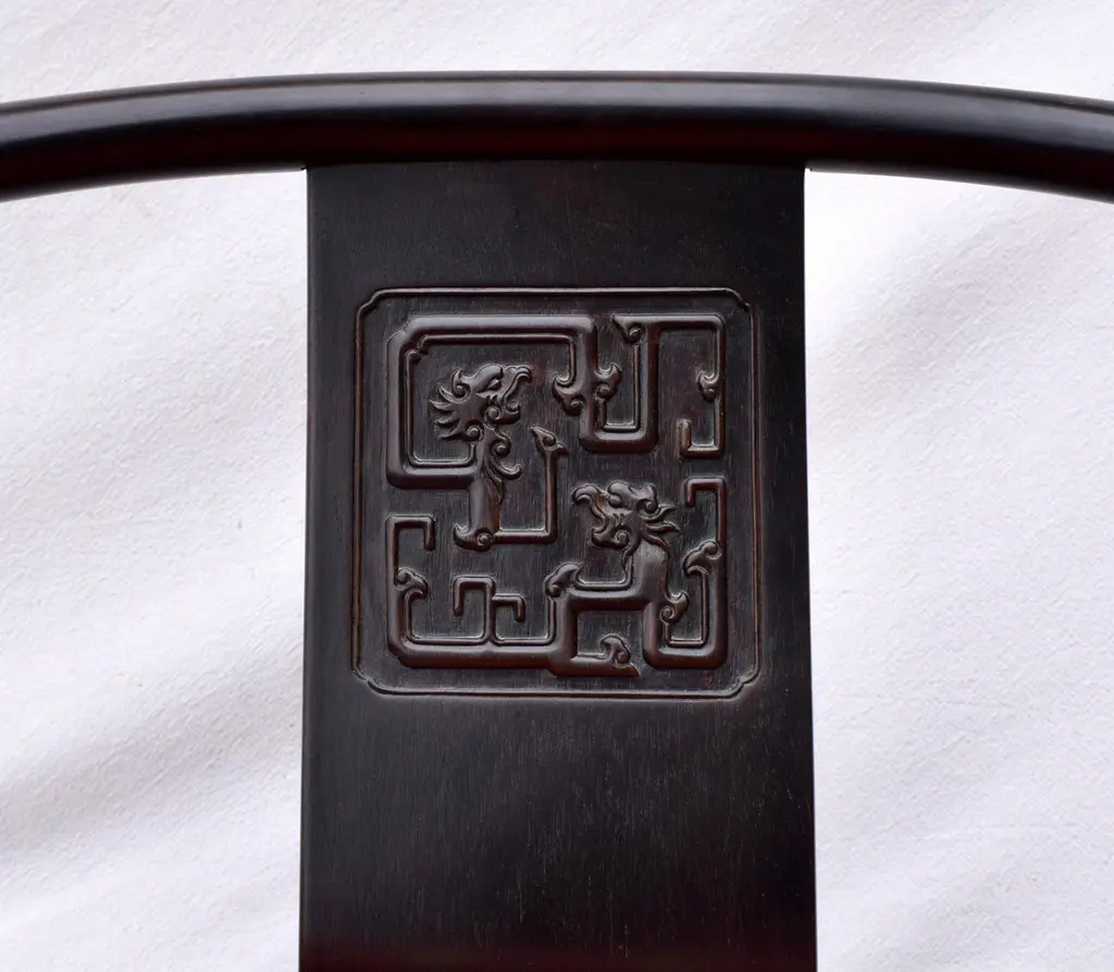 An impressive pair of solid Ebony mid 20th Century Chinoiserie chairs with distinct influences seen in later designs by Michael Taylor for Baker; 1960's. Of heirloom quality possessing a transitional aesthetic, the chairs are suitable for placement in a wide variety of settings. Seats: 17"H.