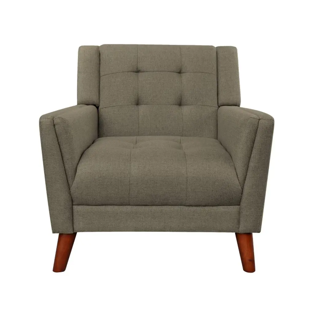 Experience a funky blast from the past with the Candace mid-century modern armchair by Christopher Knight Home. Expertly crafted, this cozy yet stylish selection boasts the perfect combination of comfort and design to elevate any living space. With its sturdy rubber legs and plush fabric composition, this armchair is the ideal spot to unwind after a long day. Give your living room, bedroom, or home office an instant upgrade with this simple modern armchair. It’s made of engineered wood with tapered legs in a warm brown finish. Welcome home an exceptionally crafted piece of furniture that stands firm in its style. TUFTED WAFFLE STITCH: The tufted stitching in the seating offers an extra touch of sophistication that enhances its contemporary design. The waffle stitch pattern adds a bit of texture without sacrificing any comfort.