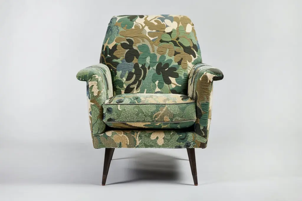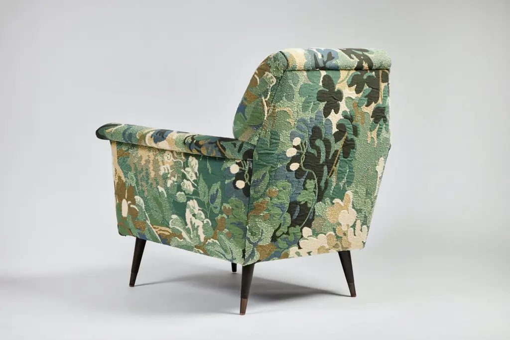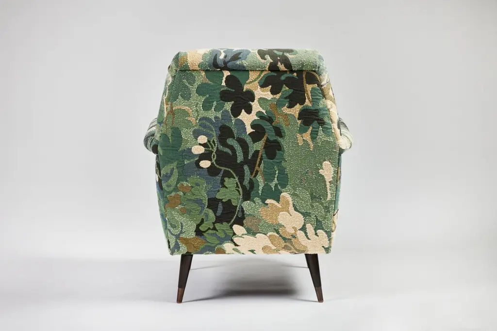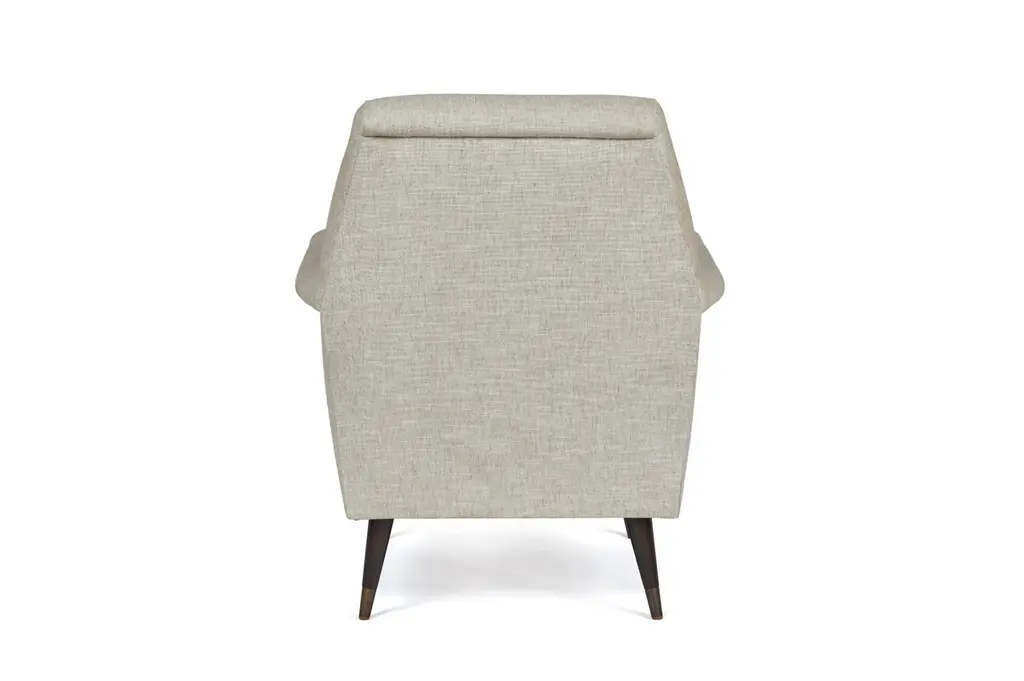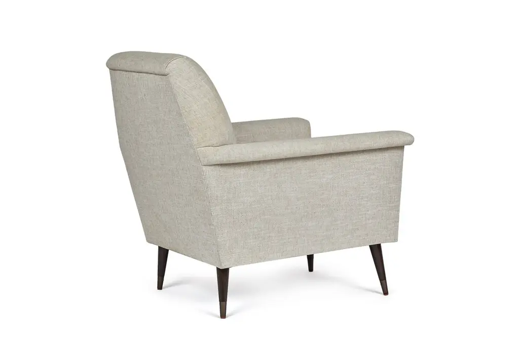 Martin & Brockett’s Jolly Club Chair is inspired in equal part by Italian modernism, streamlined comfort and the charming open air beach car it is named after. Its elegantly folded edges meet a tight upholstered frame, loose seat cushion, and tapered legs with brass caps.H 35 in. x W 30 in. x D 36 in. Seat Height 17.5”Sold as C.O.M. only - 8 yardsCustom sizes and finishes available.Part of our Jolly Collection.Lead time: 9-10 weeks.