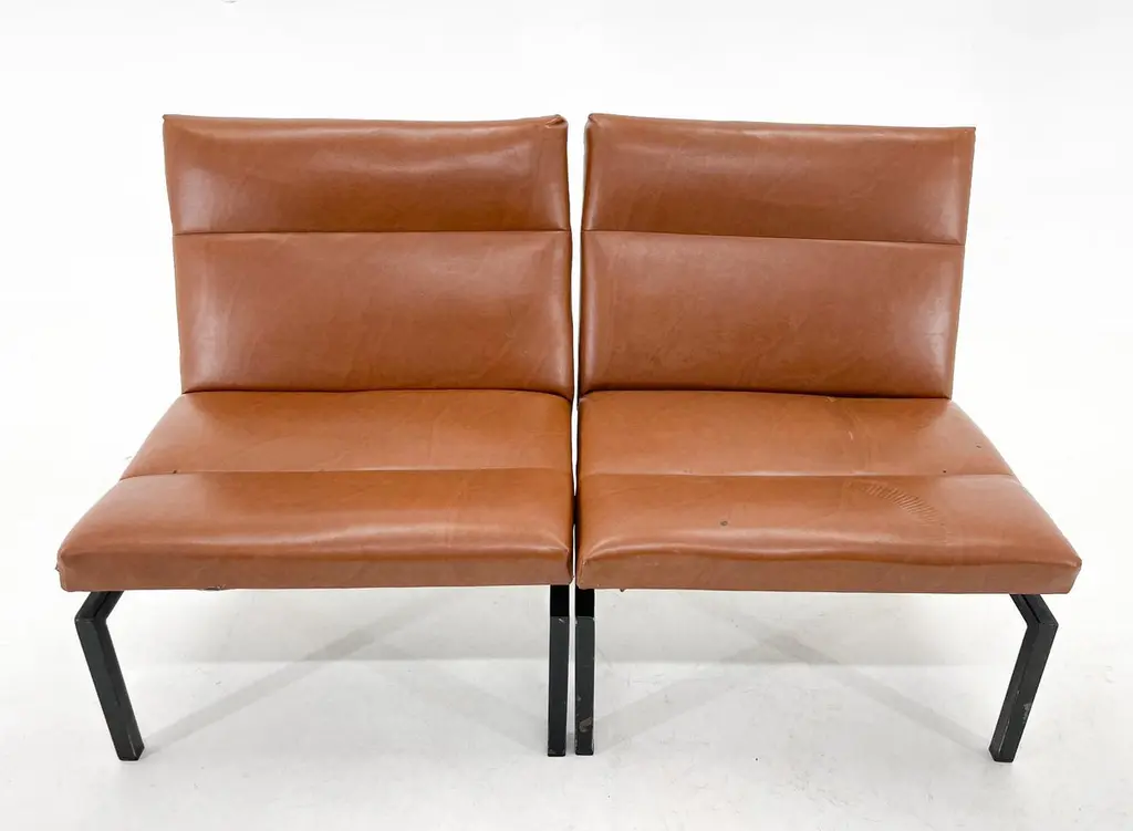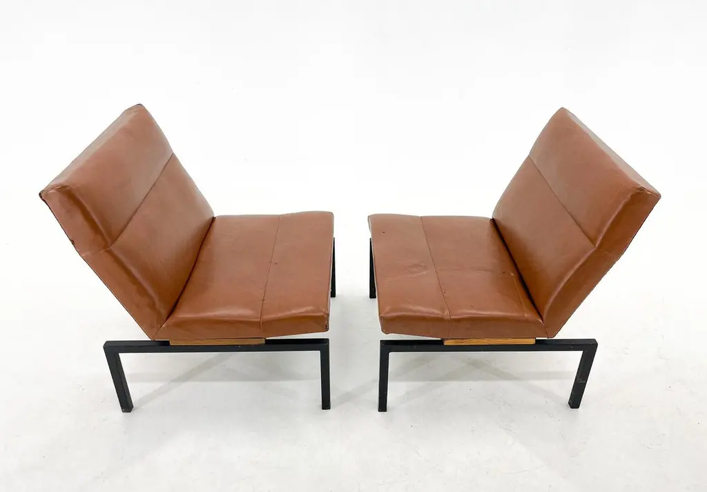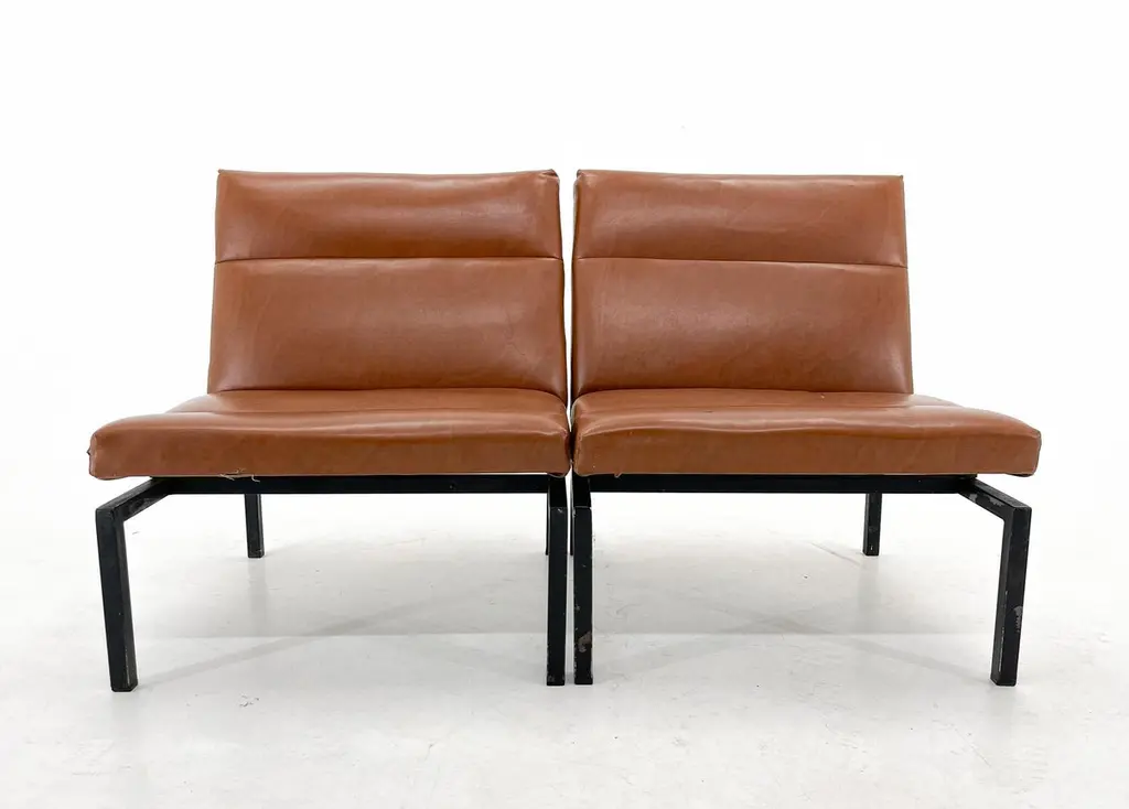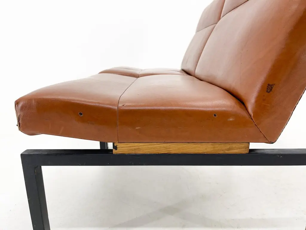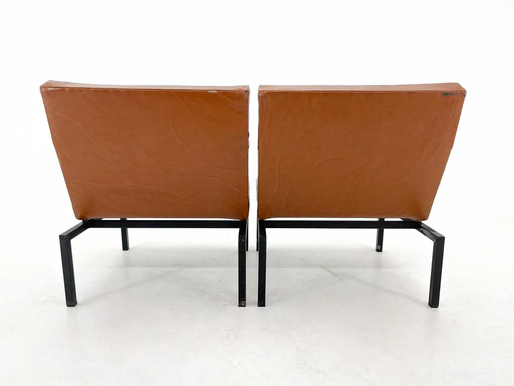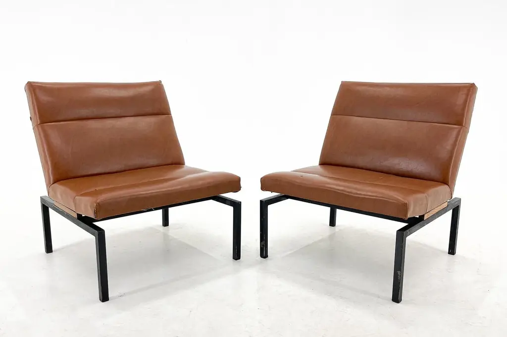 Midcentury Faux Leather & Metal Lounge Chairs, 2 Pieces Available