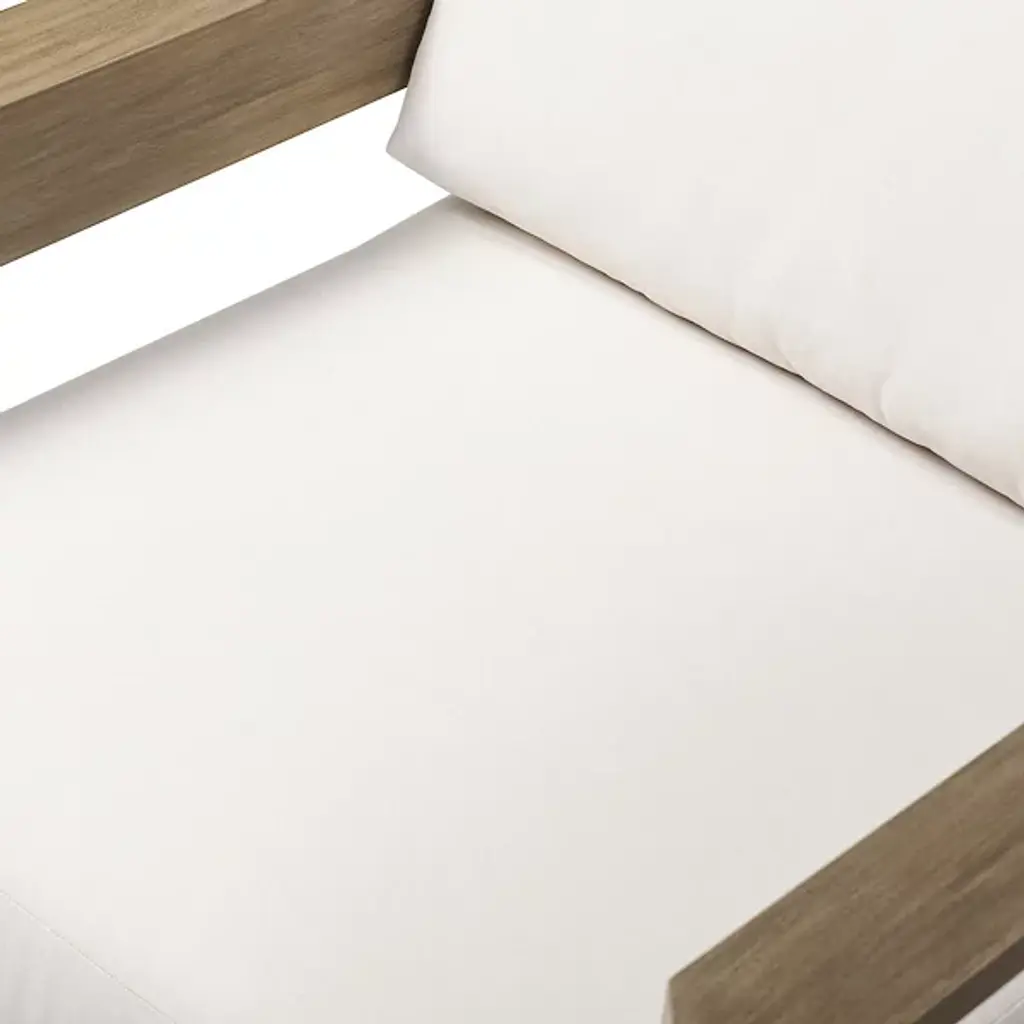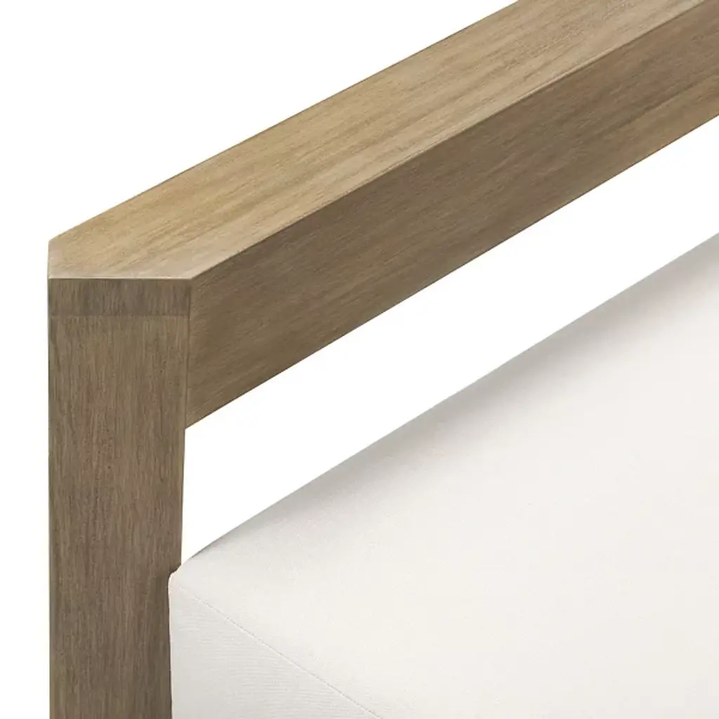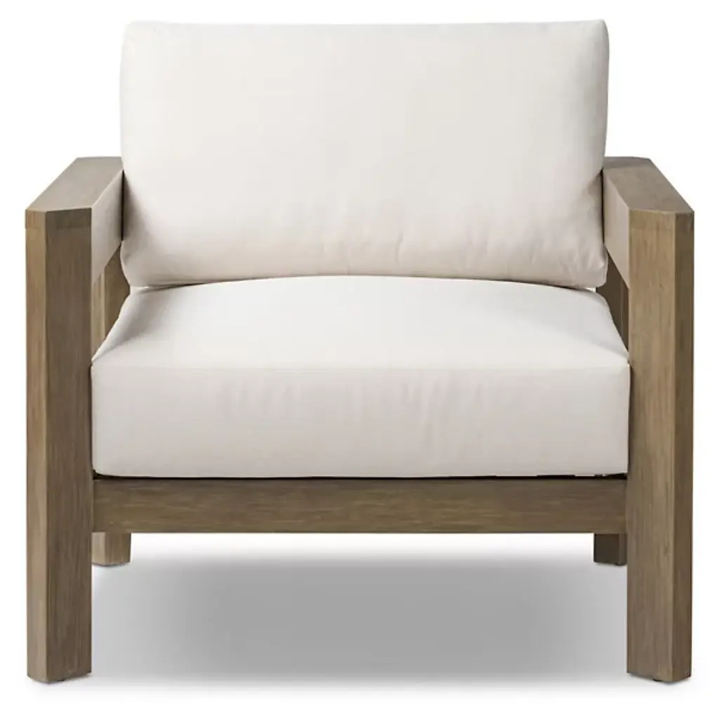Crafted for both style and durability, the Milford Outdoor Lounge Chair from Four Hands features a clean, linear frame made from FSC®-certified eucalyptus, with chamfered detailing on both arms for a refined touch. The box seat and back cushions are upholstered in high-performance olefin, a fabric designed to resist spills, stains, and everyday wear while maintaining long-term comfort. Cover or store indoors during inclement weather and when not in use.