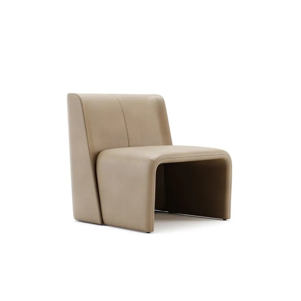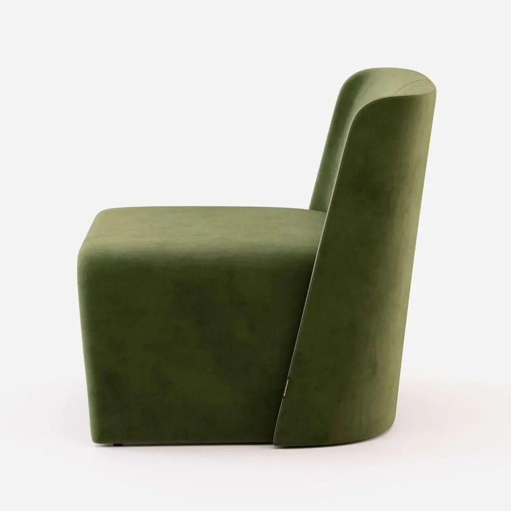This stunning armchair is the result of highly innovative solutions attached to functional and cozy shapes, merging in a harmonious craftwork design. Without armrests, the wide back smoothly flows into the structure. On the back, a minimalistic line is stitched from the top to the bottom, enhancing the beauty of a simple design.Dimensions:Width 70 cm 27.56"Depth 79 cm 31.1"Height 75 cm 29.53"Seat Height 42 cm 16.54"COM/COL production, requirements and material shipping instructions.We do our best to expedite production and to ship and deliver product within the listed lead time, however current lead times might be longer due to global shipping backlog and delays. These delays are out of our control and cannot be a reason to cancel an order.Our pricing includes all costs for international shipping to the U.S., as well as duties and customs clearance fees. Please be aware that local delivery within the U.S. is not included. We offer white glove, front door, and warehouse delivery options. For shipments outside the U.S., kindly reach out to us for a detailed quote