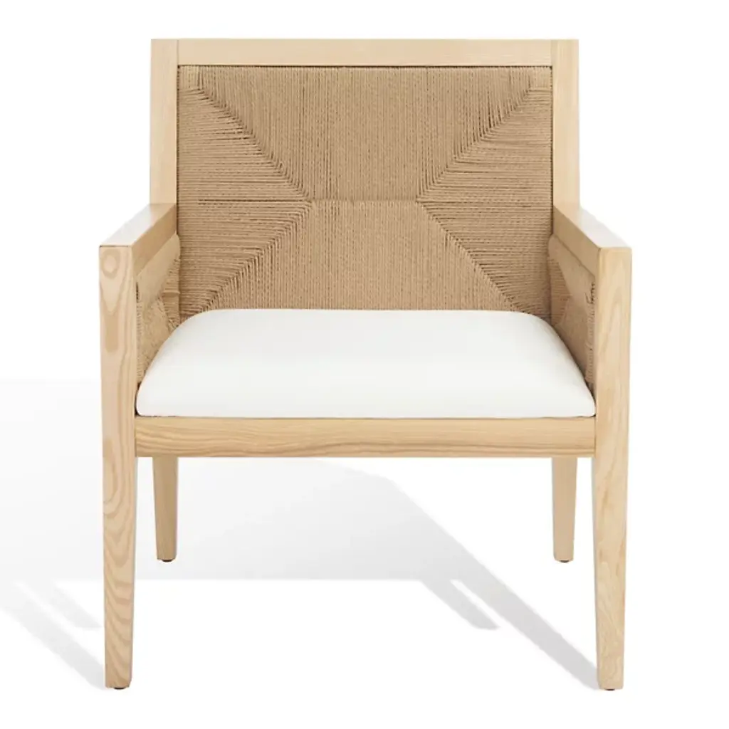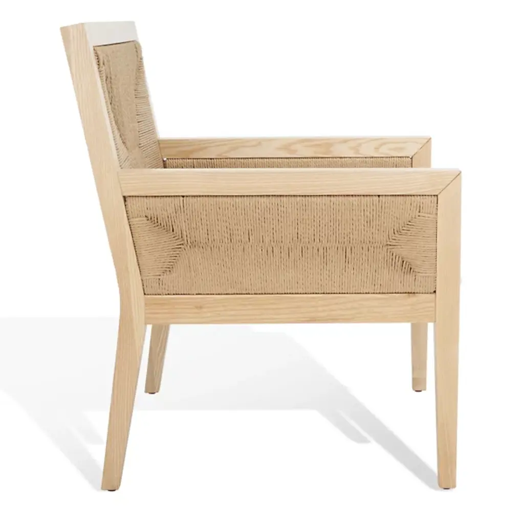 The Mishal Accent Chair is presented by Alder & Ore. It boasts a neat and proportioned design that effortlessly blends style and comfort. The standout feature of the chair is its beautifully woven back and arms, creating an eye-catching focal point. The rush weave pattern adds a touch of texture and visual interest. Crafted with an ash wood frame and tapered legs, this chair ensures durability and stability. The comfy armrest and slim padded seat offer a cozy seating experience, perfect for relaxation or engaging conversations.
