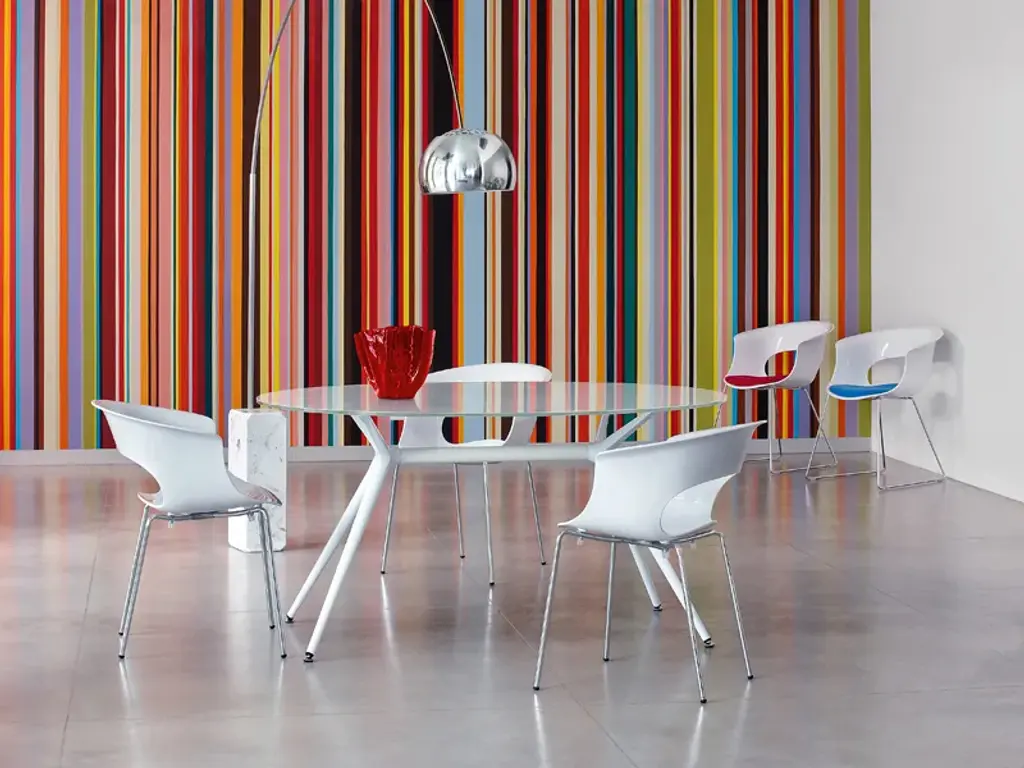 MISS B ANTISHOCK is a stackable chair with polycarbonate material main body and 4-leg chrome steel tube frame.Various colour solutions, for both in the transparent and the glossy colour versions. For indoor use.Also available with fixed fabric seat cushion. On request, all combinations with the fabrics offered and further colours of the main bodies available are possible.Upholstered range available: woven fabric, velvet fabric.PURCHASE INFORMATION : Price includes 2 pcs. with the same configuration.