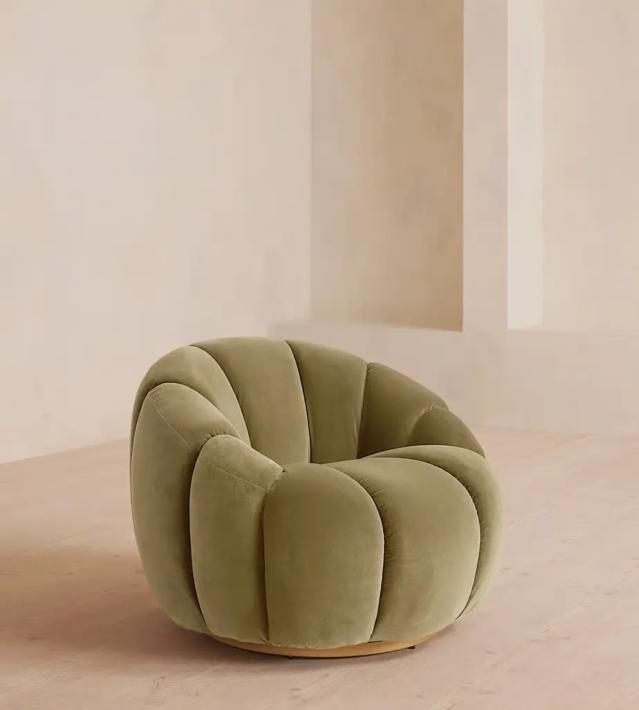 Introducing Misty: This textural set, sofa and accent chair, is a welcome addition to any home. It doesn't get cozier than this mid-century inspired design, topped with coordinating pill-shaped pillows and upholstered in a delicious cream boucle!