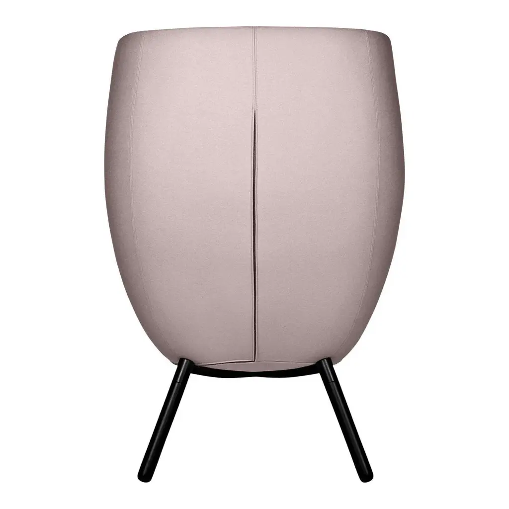 The MOAI's large shell is formally inspired by the soft shapes acquired by square bricks and other stone after years of rolling back and forth on the beach. This highlights the chair's function as an ‘unplugged' retreat from the hustle and bustle of daily life. The MOAI is designed to close comfortably around you when you sit in it. It acts as a quiet little room on four legs that lets you have some peaceful moments for yourself. The distinctive notches around the armrest give it personality and a comfortable support when you are getting up. From the side they give the MOAI is a unique, slightly naive expression that's reminiscent of the massive sculptures of faces on Easter Island. The MOAI's upholstered shell rests on a simple metal cross that follows the chair's soft form and leads down into four turned wooden legs. The MOAI is a haven in a busy and chaotic time – like a cave to hide away in for a while.