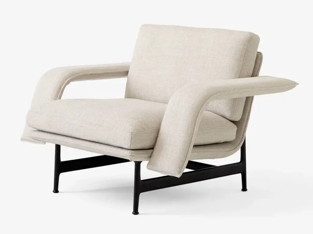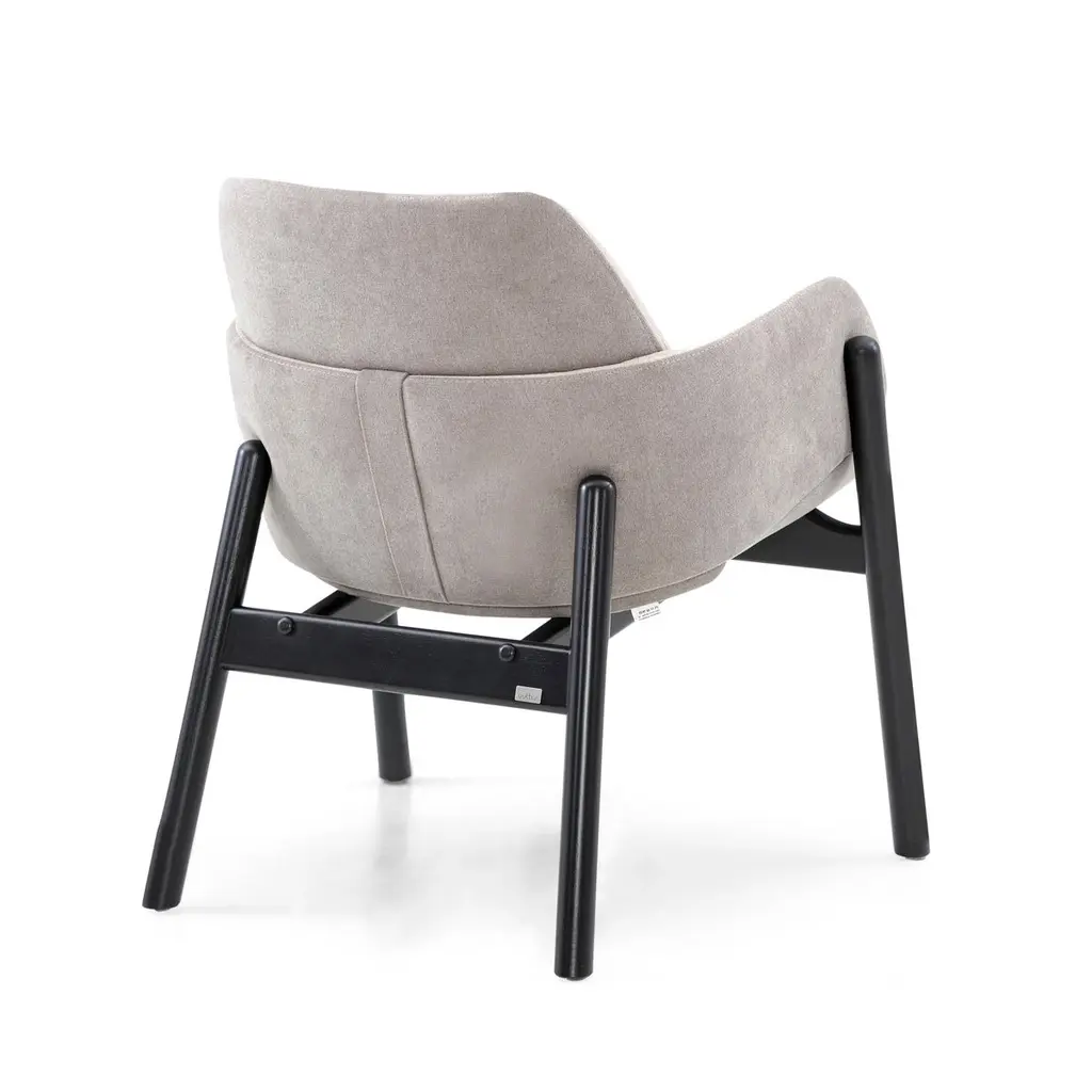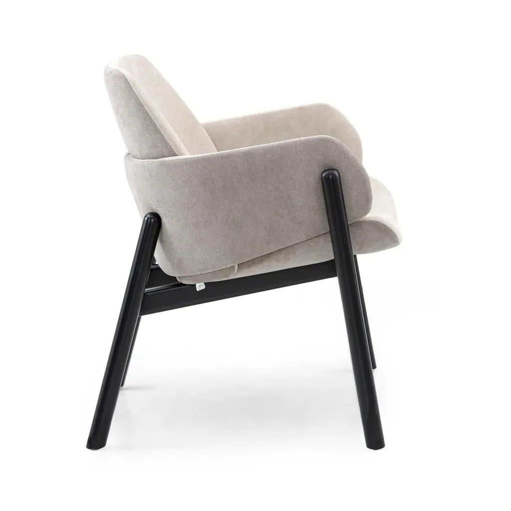 Modern Armchair With Black Matte Frame And Light Toned Fabrics, Above Collection