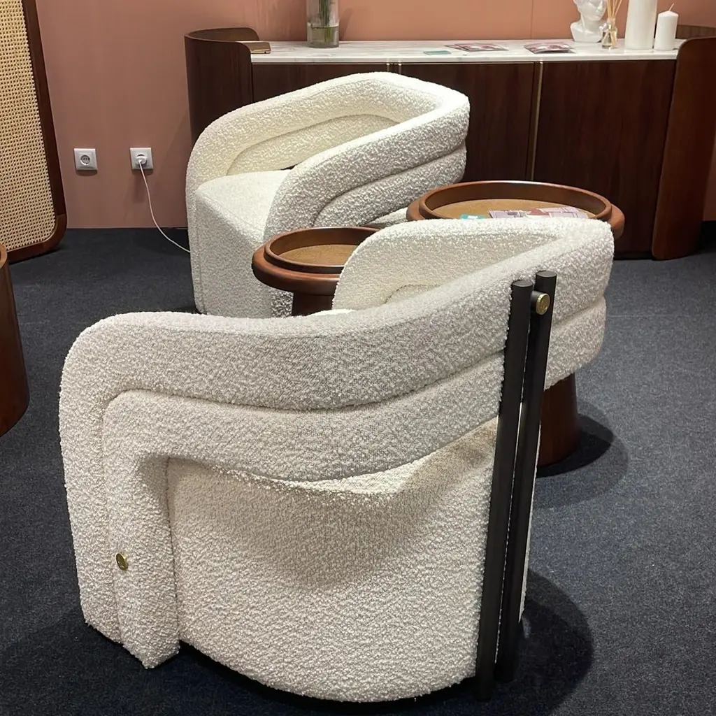 Modern Bouclé Upholstered Armchair With Black Lacquered Metal Base