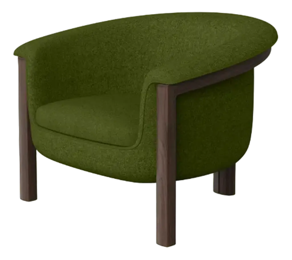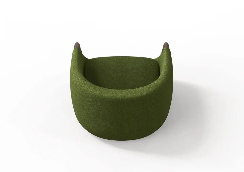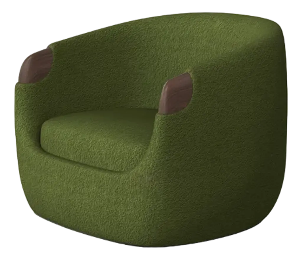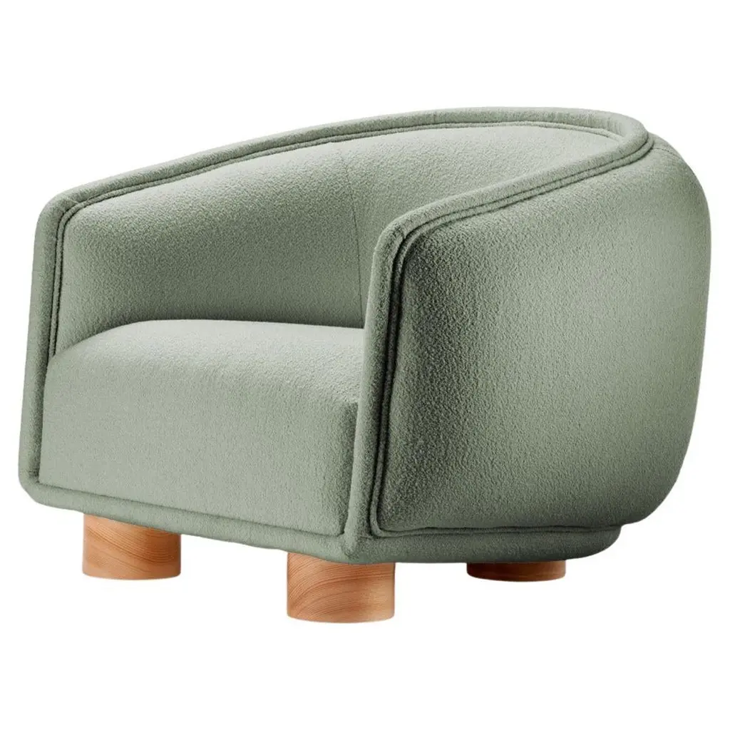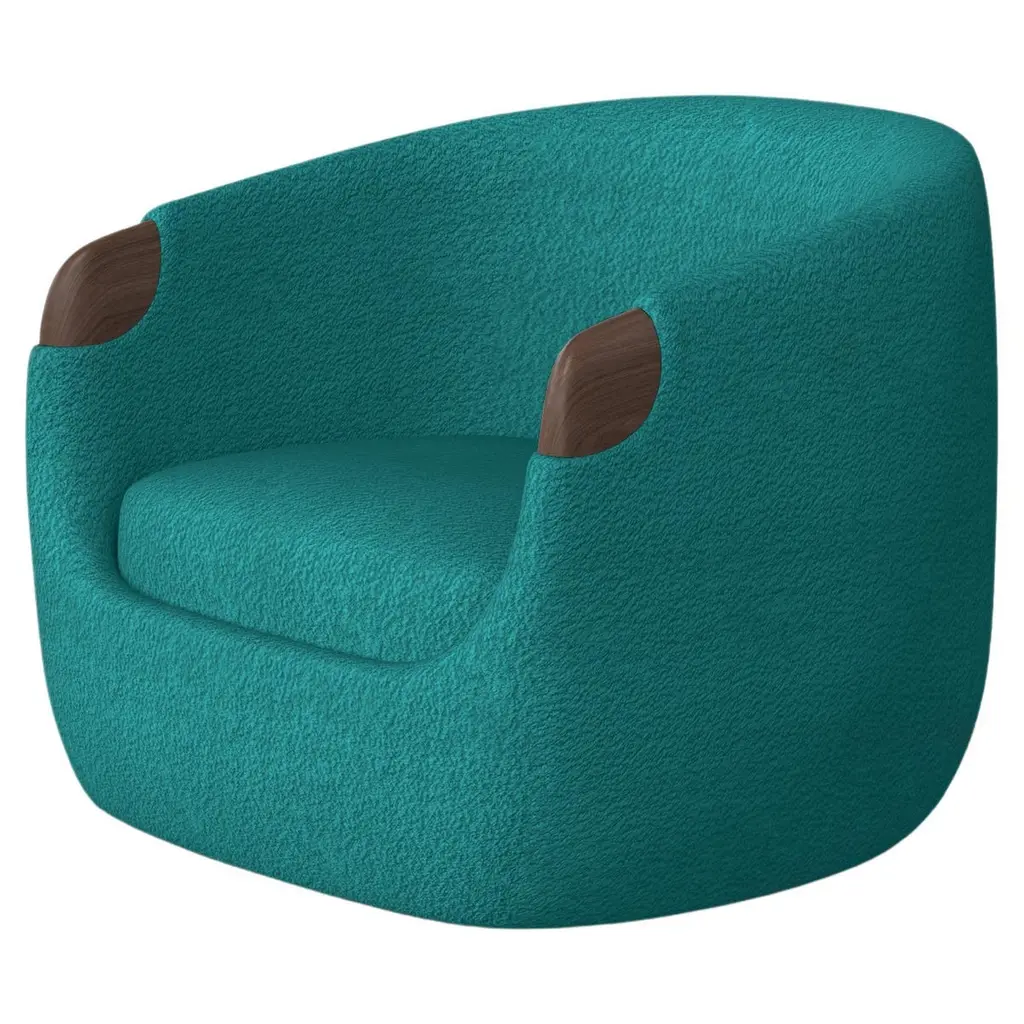 Modern Bubble Armchair In Green Boucle And Walnut