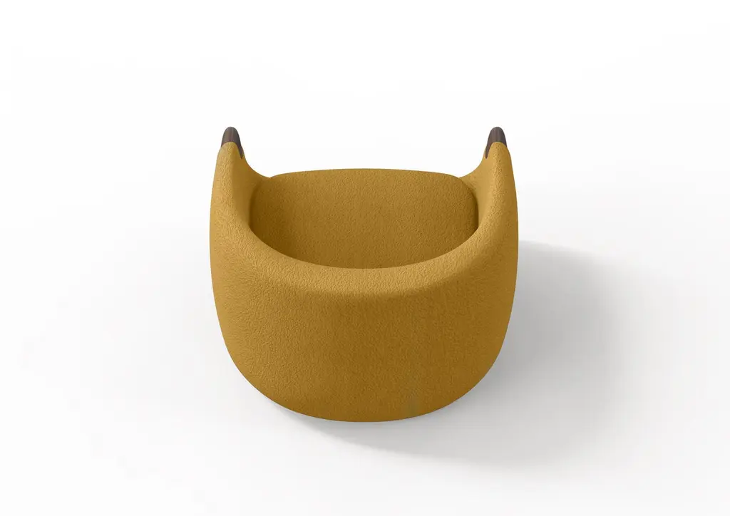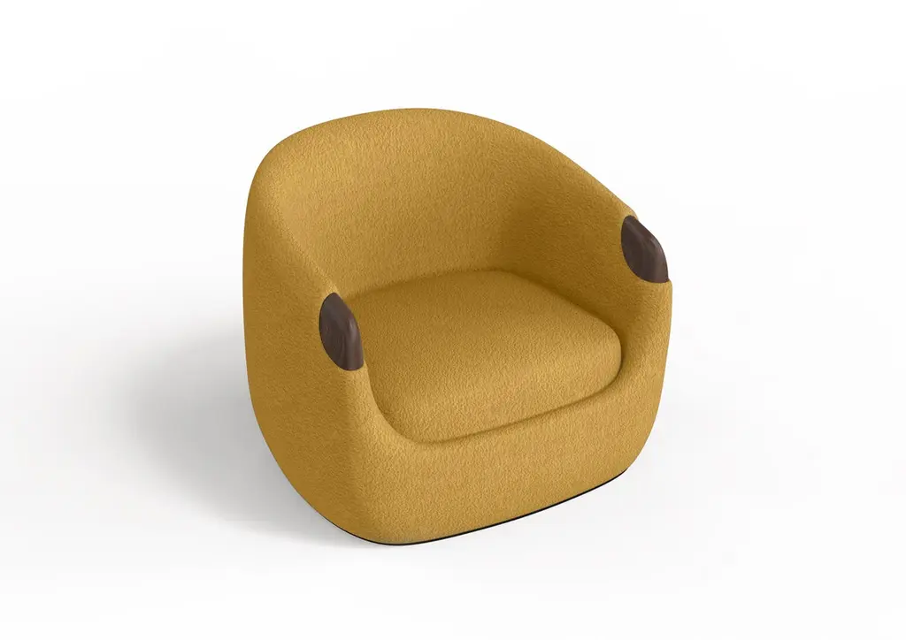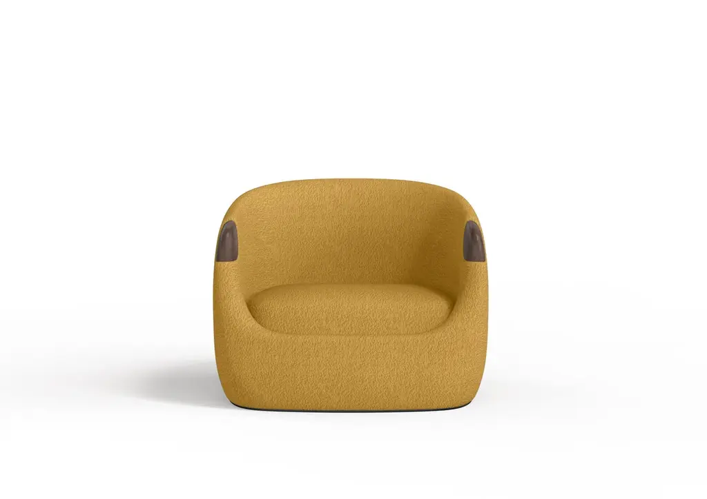Modern Bubble Armchair In Mustard Boucle And Walnut
