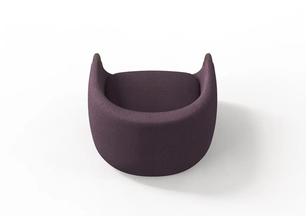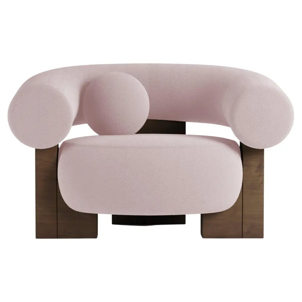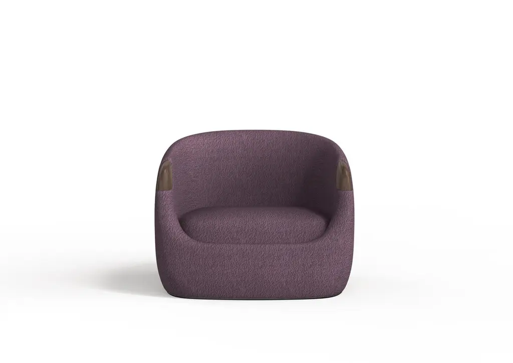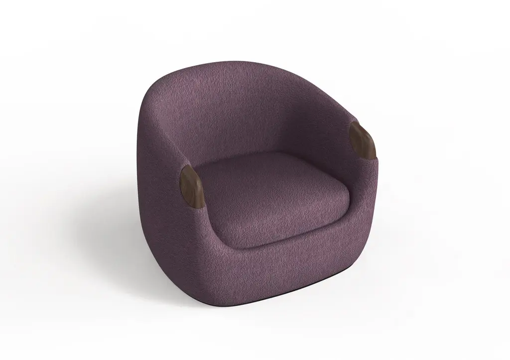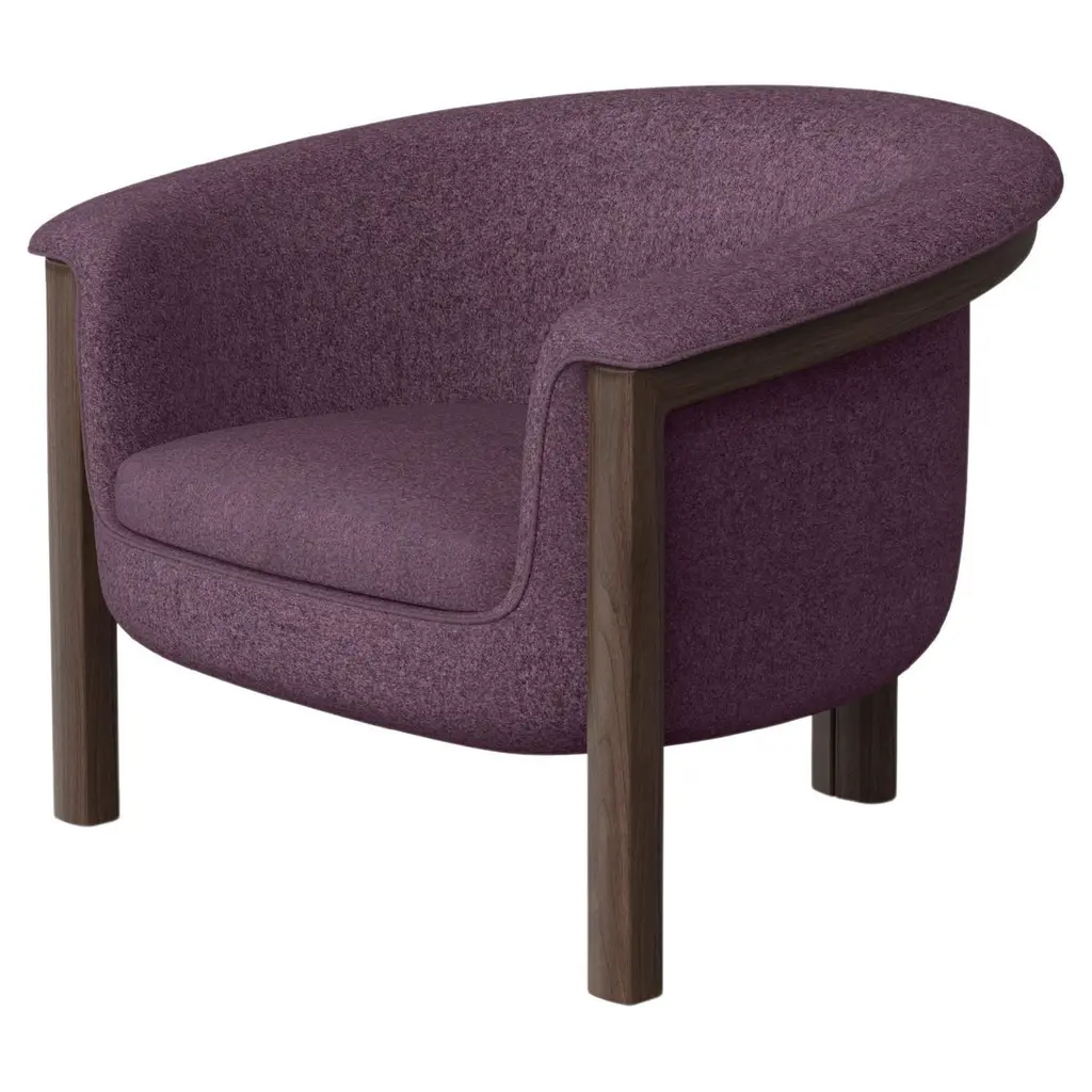 Modern Bubble Armchair In Purple Boucle And Walnut
