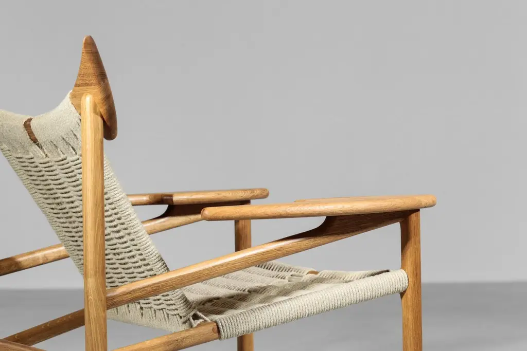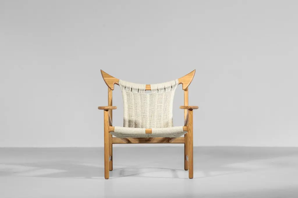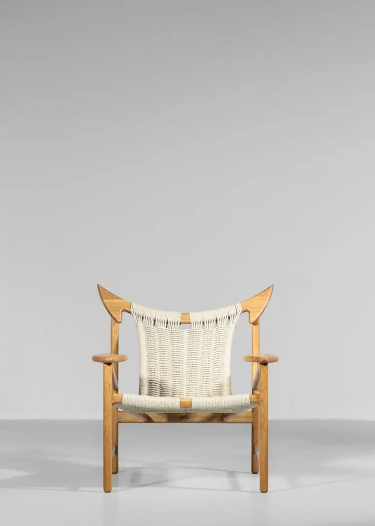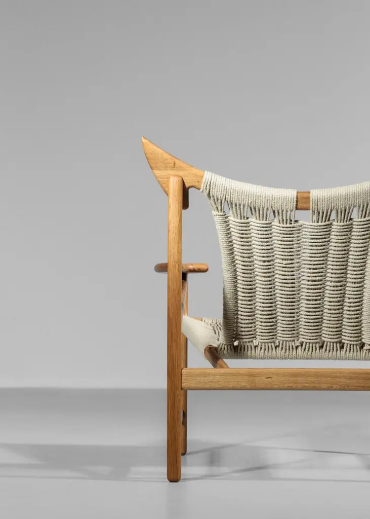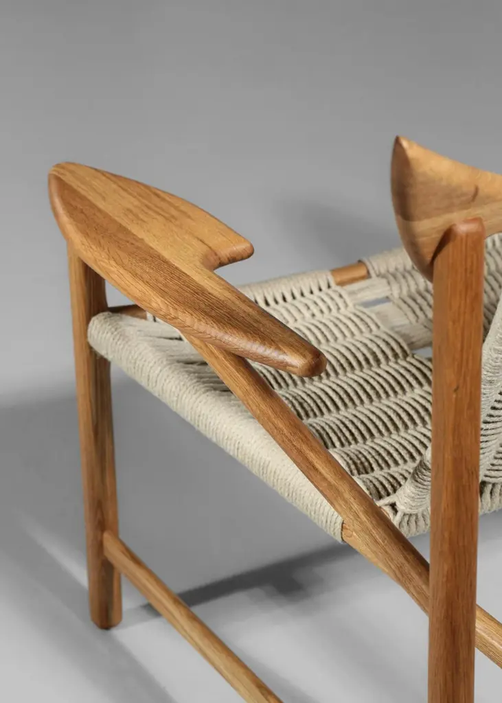 Pair of Danish easy chair de fauteuils. Modern manufacture by Godsk cabinetmaker. Structure in massive oak with hemp rope seat. All handcrafted, incredible manufacture.