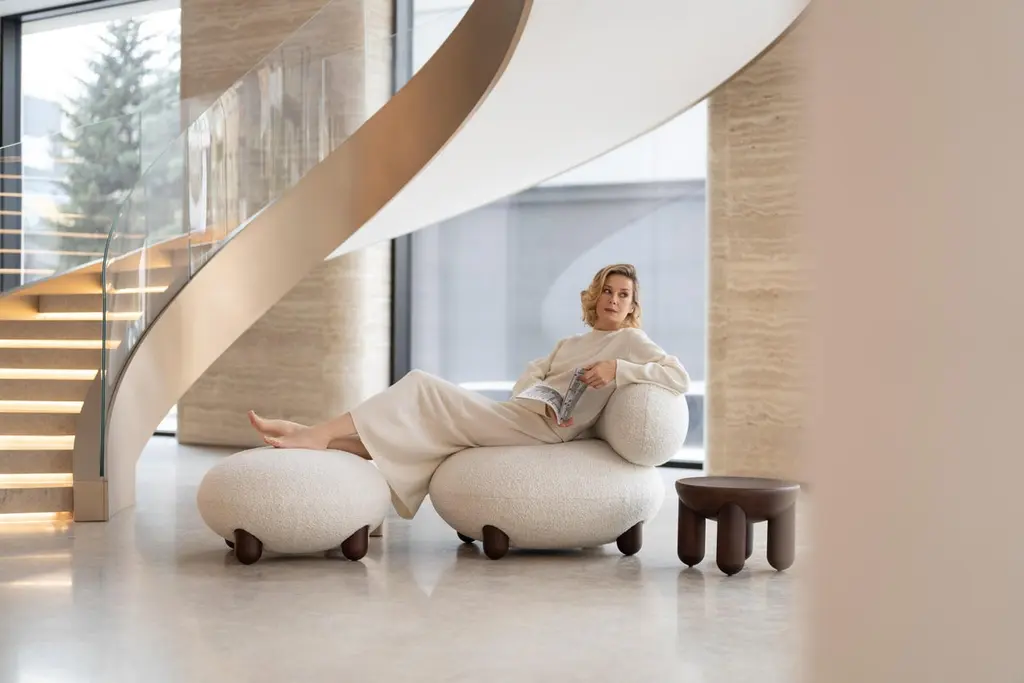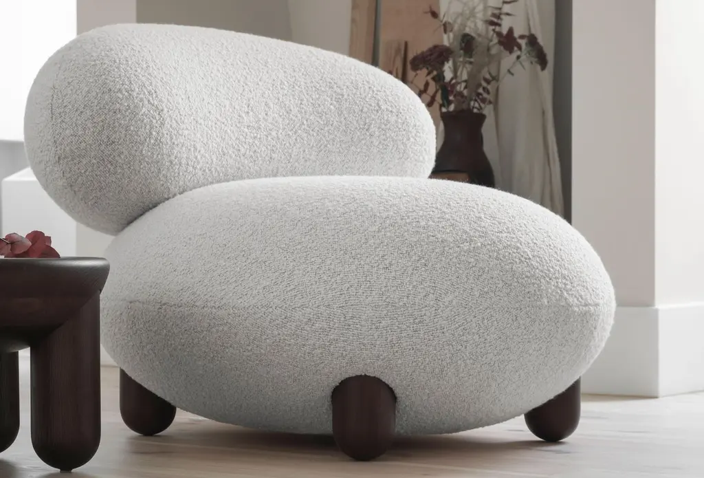 The “Flock” furniture collection draws on the idea that home is a place of comfort, sanctuary, and gathering and should be filled with personalized, character-rich, and eye-catching statement objects.Soft, voluptuous, sensual forms, natural materials, and pleasant-to-the-touch surfaces reflect a desire for warmth and cocooning."Subtly curved artistic silhouettes, soft fabric, and wooden legs define the furniture's relaxation and cuteness. We wanted to create furniture that would become part of the family, intimate and beloved," - said Kateryna Sokolova, designer of the Flock collection.The name "Flock," which means "to move or come together," refers to the collection's role as a peaceful oasis and the main meeting space within the home.Designer: Kateryna SokolovaMaterials: wood, plywood, foam rubber, injection-molded soft foam, textileFabrics: Dedar Karakorum / Karandash BoucleAvailable in a wide range of Dedar Boucle colors and other finishes and fabrics on request.Dimensions: H 72 cm, W 90 cm, D 99 cm seat H 44 cmLead Time: 2 months.
