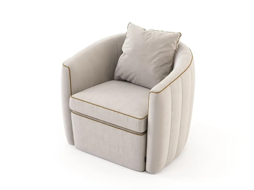 The Fortune collection creates a disruption of the traditional. The joining of different materials and the combination of straight lines creates pieces that escape the conceptualization of existing furniture, providing a new way of facing elegance and glamour.With a round back and supportive arms, the Fortune armchair takes on a timeless design that elevates it to an iconic piece. Upholstered in Paris fabric, yet customisable, it can be a great option to add to any living room. Sit back and enjoy all the comfort. An incredible piece to provide a singular reading area, the Fortune armchair with its upholstered structure allows you to accommodate in the best possible way. The velvet fabric conveys a luxurious and irreverent design. The neutral tone allows you to combine this piece with the rest of the furniture without compromising the aesthetics.As the product can be personalised, the image of the presentation is merely illustrative.NotesClass 1 fabrics include synthetic leather; natural leather finishing (class 2) - Price on requestPossibility to make with COM (“Customer’s Own Material) fabric