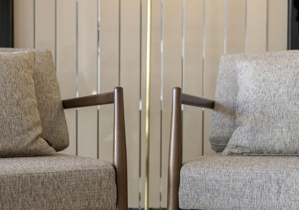 The Miami Collection draws inspiration from the cold, rugged landscapes of the Nordic region and blends it with the warmth and contemporary flair of Miami. This fusion results in a unique collection that embodies both the cosiness of Nordic culture and the refinement of modern fashion.With a deep back and supportive arms, the elegant Miami armchair upholstered in lined fabric features mate walnut legs. Nordic-inspired in gray and beige, this armchair adds a warm, minimalist touch to any setting. The lined fabric of the Miami armchair lends an elegant and sober design. Inspired by modern inspiration, this piece provides nooks and crannies of pure luxury in the living room. The walnut wood mate legs mark the high quality of Stylish Club's finishing materials. The wood brings a warm aura to the piece, making it perfect for family moments.As the product can be personalised, the image of the presentation is merely illustrative.NotesClass 1 fabrics include synthetic leather; natural leather finishing (class 2) - Price on requestPossibility to make with COM (“Customer’s Own Material) fabric