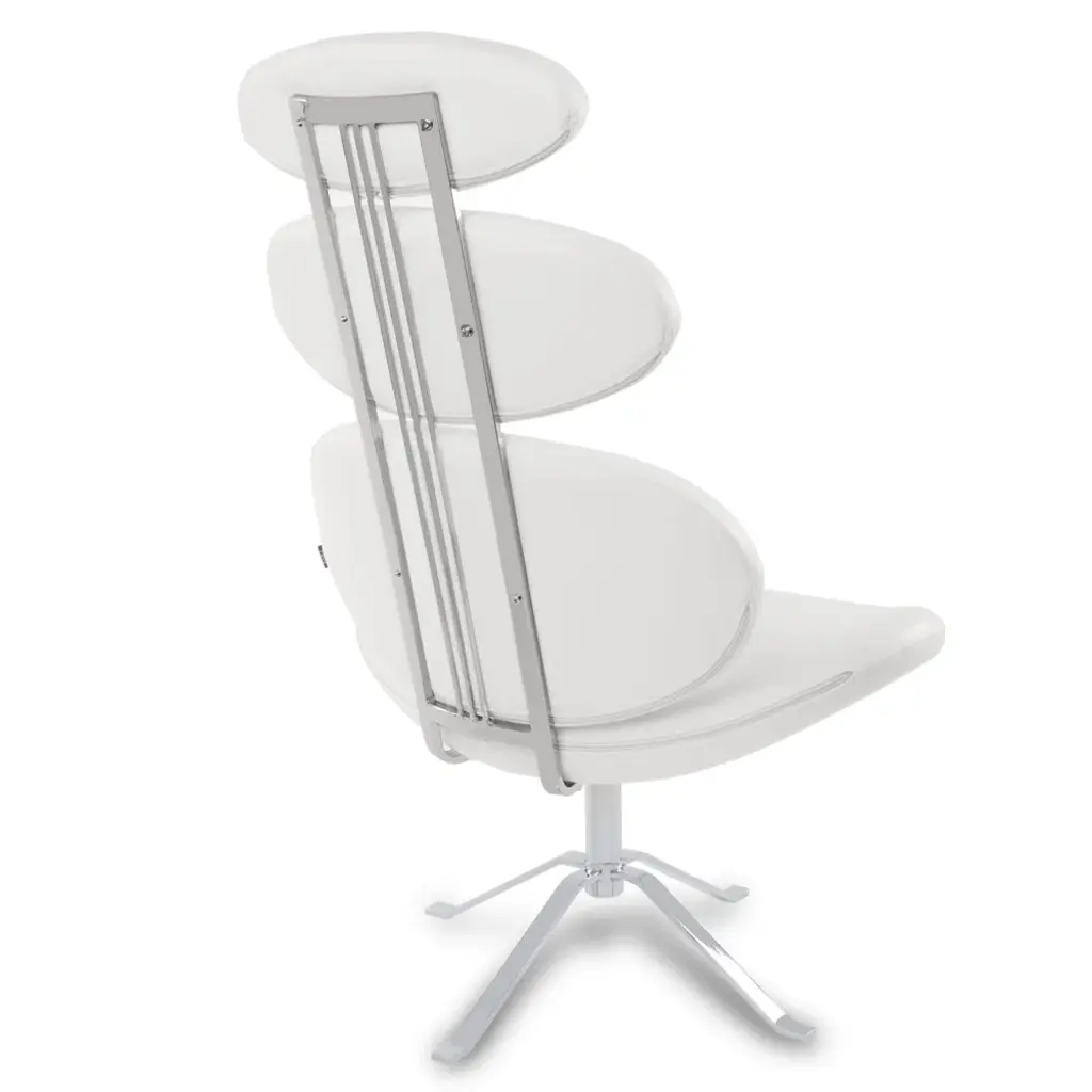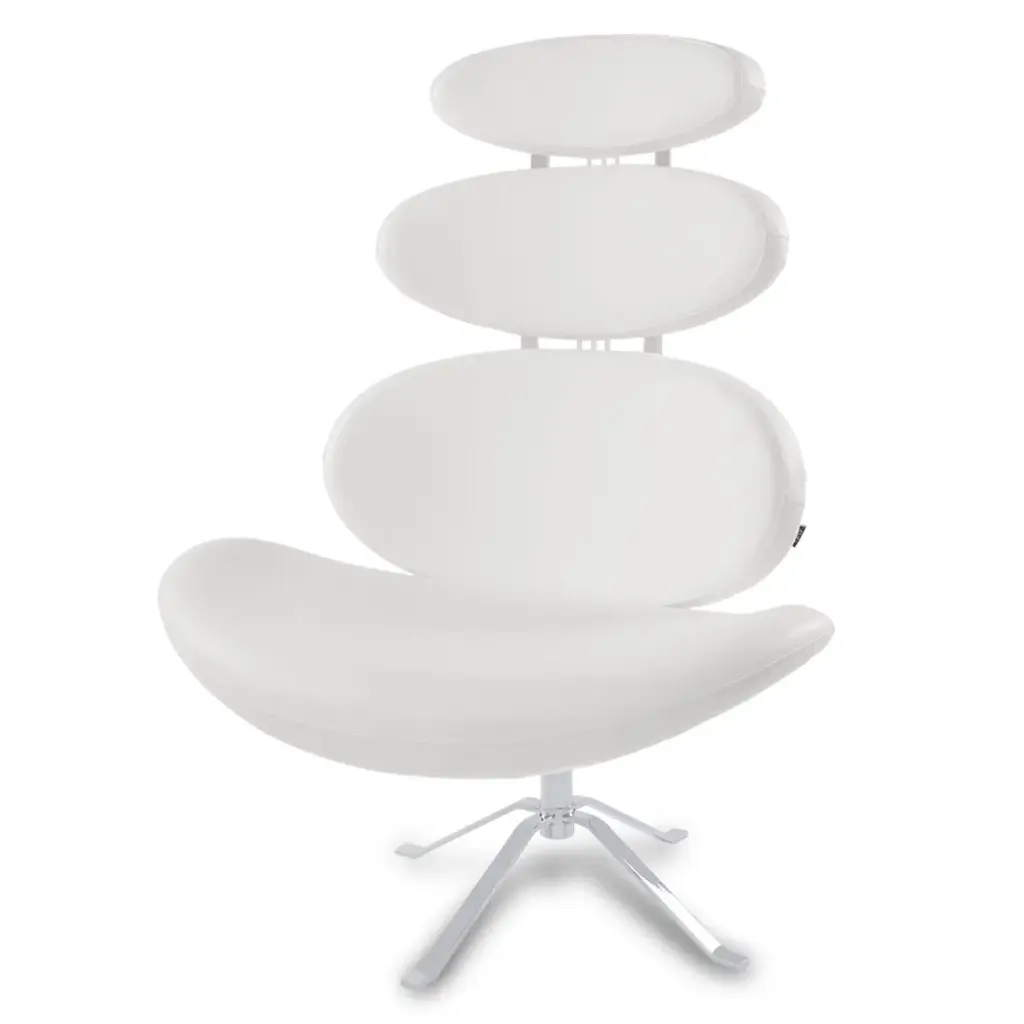 The Pebble faux leather chair was designed for people who love to be different. The funky modular design composed of four well-padded cushions, held together by a metal spine, with a curved seat and tall backrest, gives you the excellent support you need. Standing on chrome legs, the Pebble is bound to raise eyebrows with its slightly retro, yet contemporary look. This product is suitable for indoor use only.
